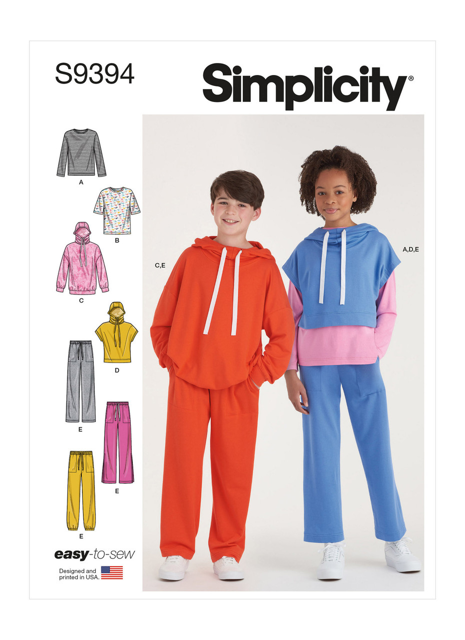 Oversized knit hoodies are regular length or cropped, with built up drawstring neckline, pull-on pants, long and short sleeve tees.