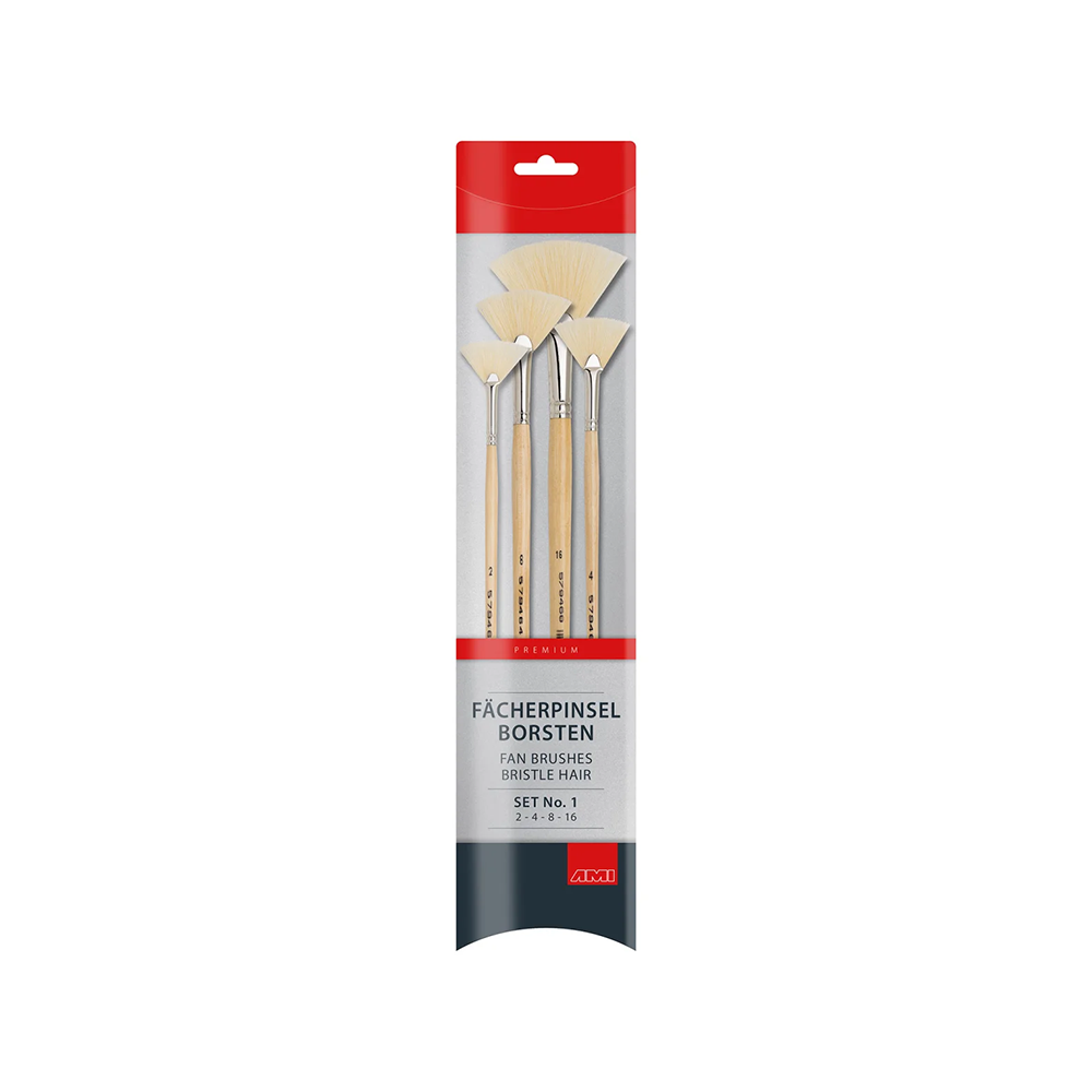 Fan brush bristles set 1, size 2, 4, 8, 16 bristle brush with a seamless, silver-colored ferrule with a long, clear-lacquered wooden handle Suitable for acrylic, oil and gouache painting