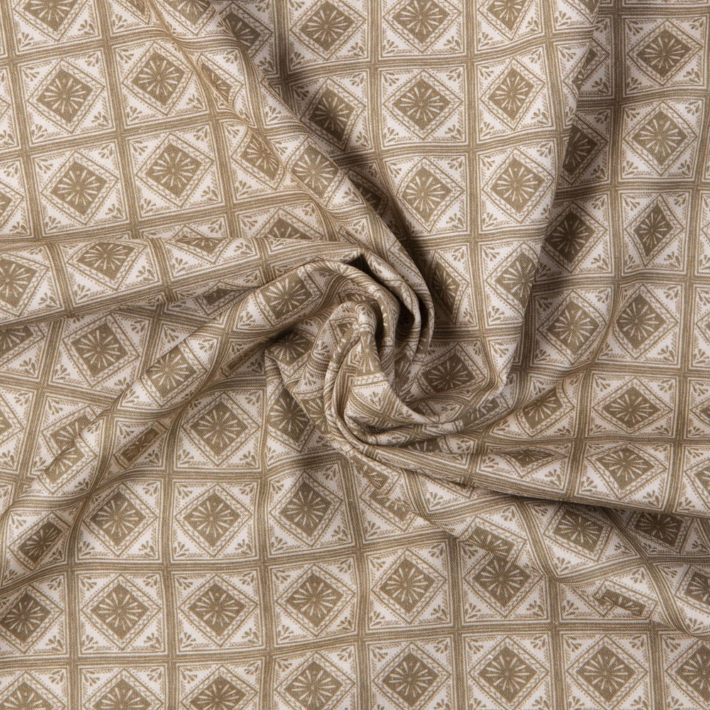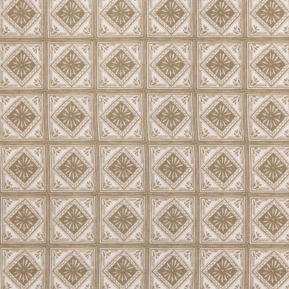 Ornate tile effect in neutral tones. Beautiful, high quality, printed cotton fabric. Ideal for quilting, masks, crafts, displays, table decoration and as a dressmaking fabric.