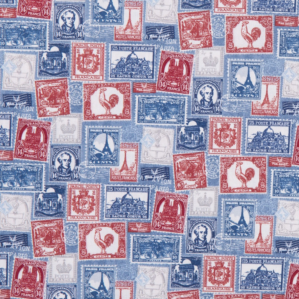 Vintage French stamps, we love this quilting cotton! Beautiful, high quality, printed cotton fabric. Ideal for quilting, masks, crafts, displays, table decoration and as a dressmaking fabric.