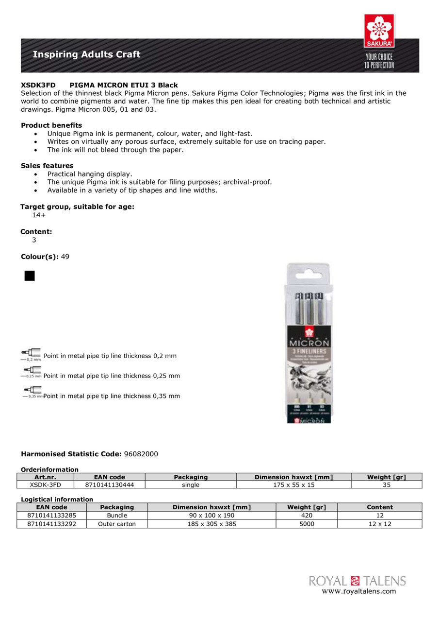 For drawing, writing and illustrating, both technical and artistic. The unique Sakura Pigma archival ink will not bleed through paper, is permanent, w… Read More