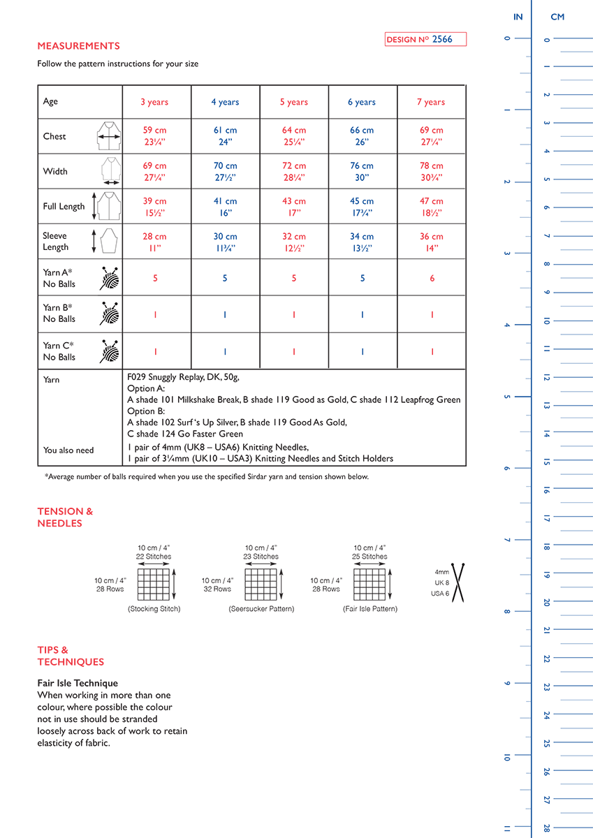 1 pair of 4mm (UK8 – USA6) Knitting Needles, 1 pair of 3.25mm (UK10 – USA3) Knitting Needles and Stitch Holders