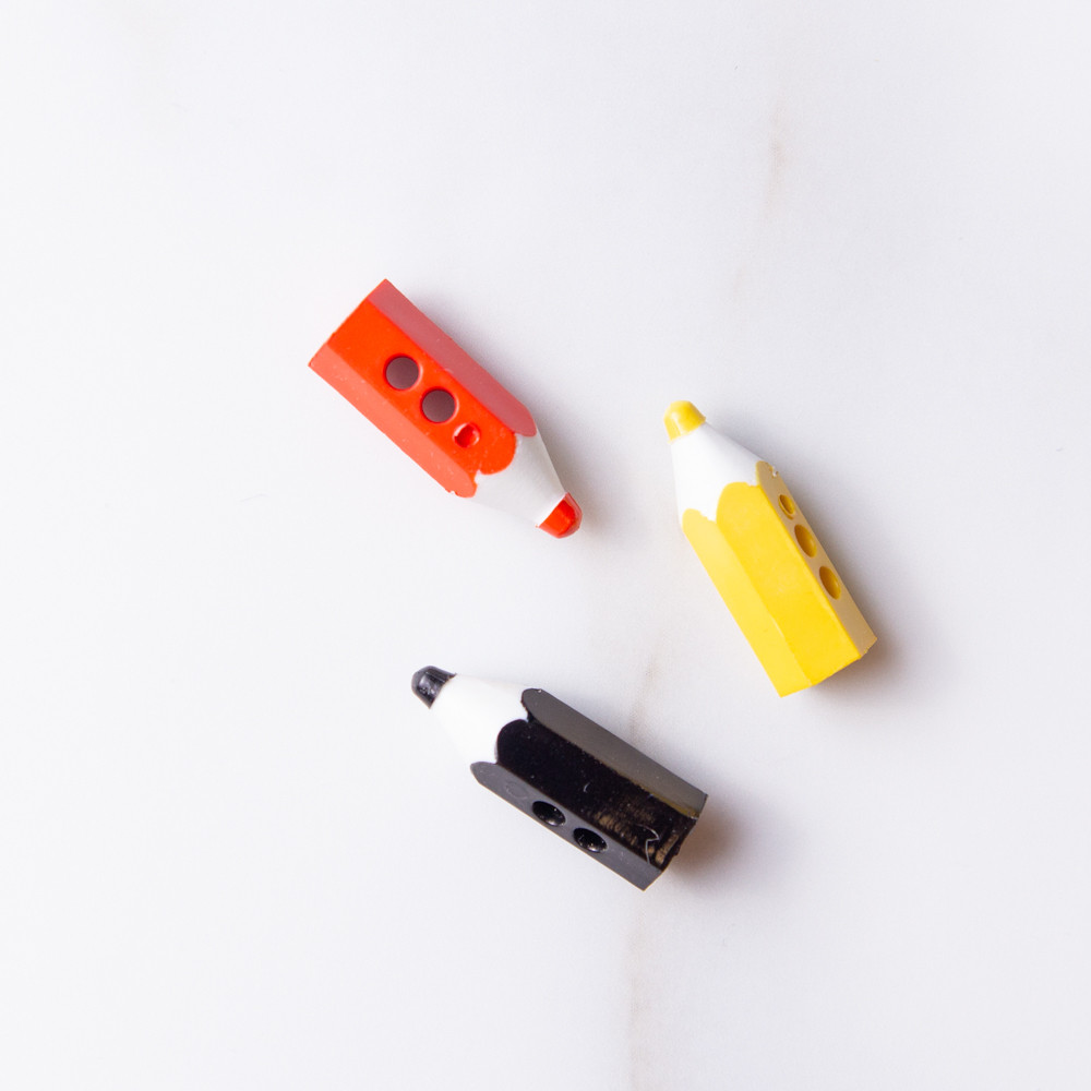 Cute mini pencil buttons with two holes.