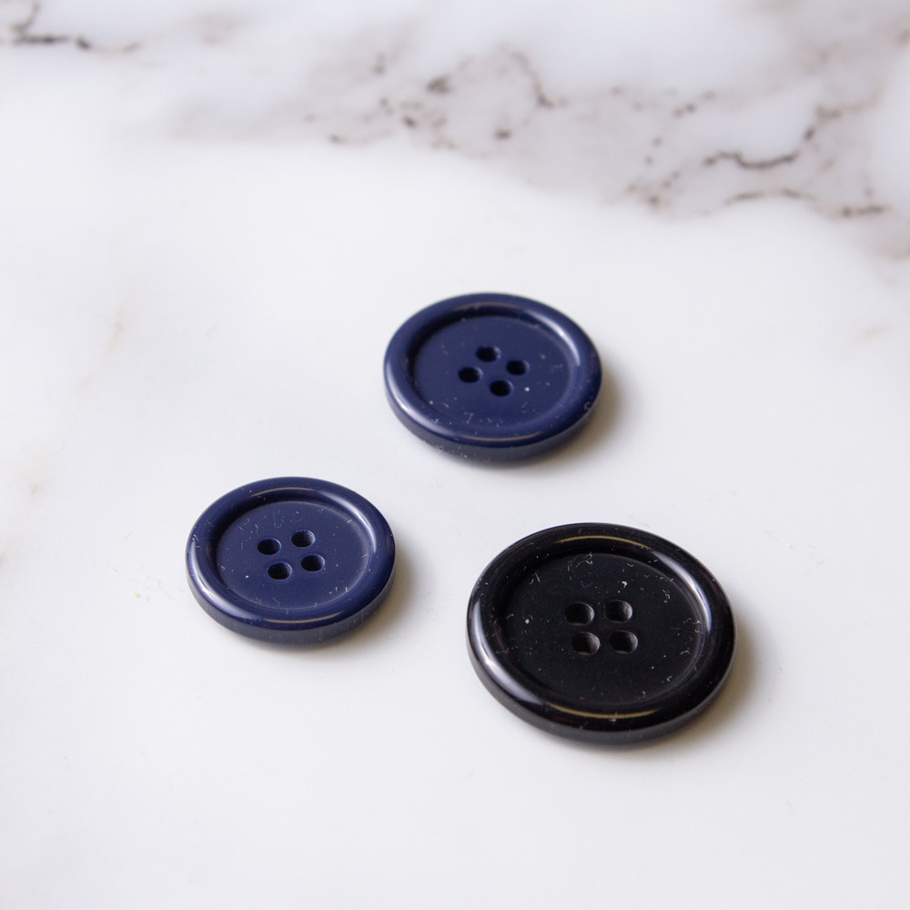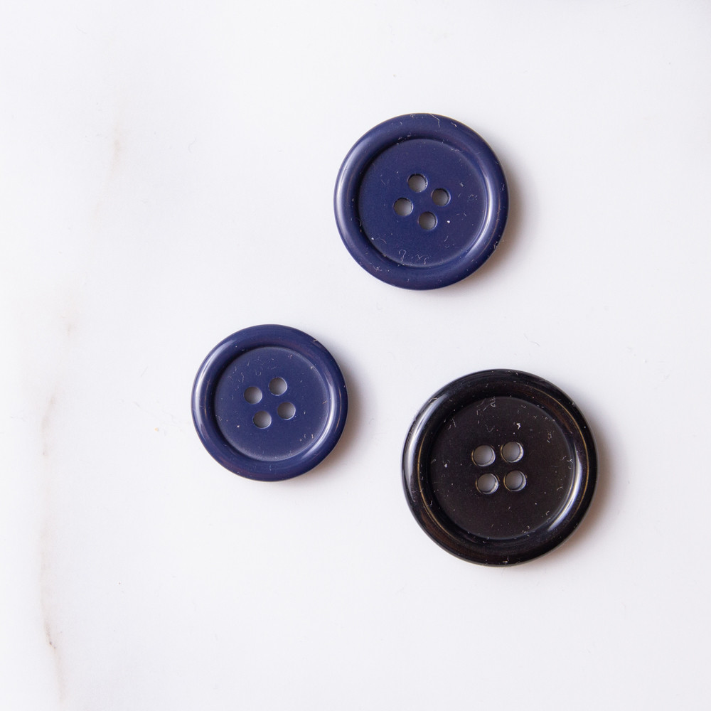 - Plastic button with chunky rim and 4 holes.
