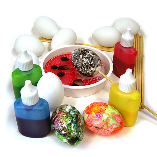 Hollow plastic eggs, primed ready for painting or marbling. Each egg has a hole at one end for mounting on its stick for decoration or display. Best used with acrylic paints or marbling inks (paint/ink not included).