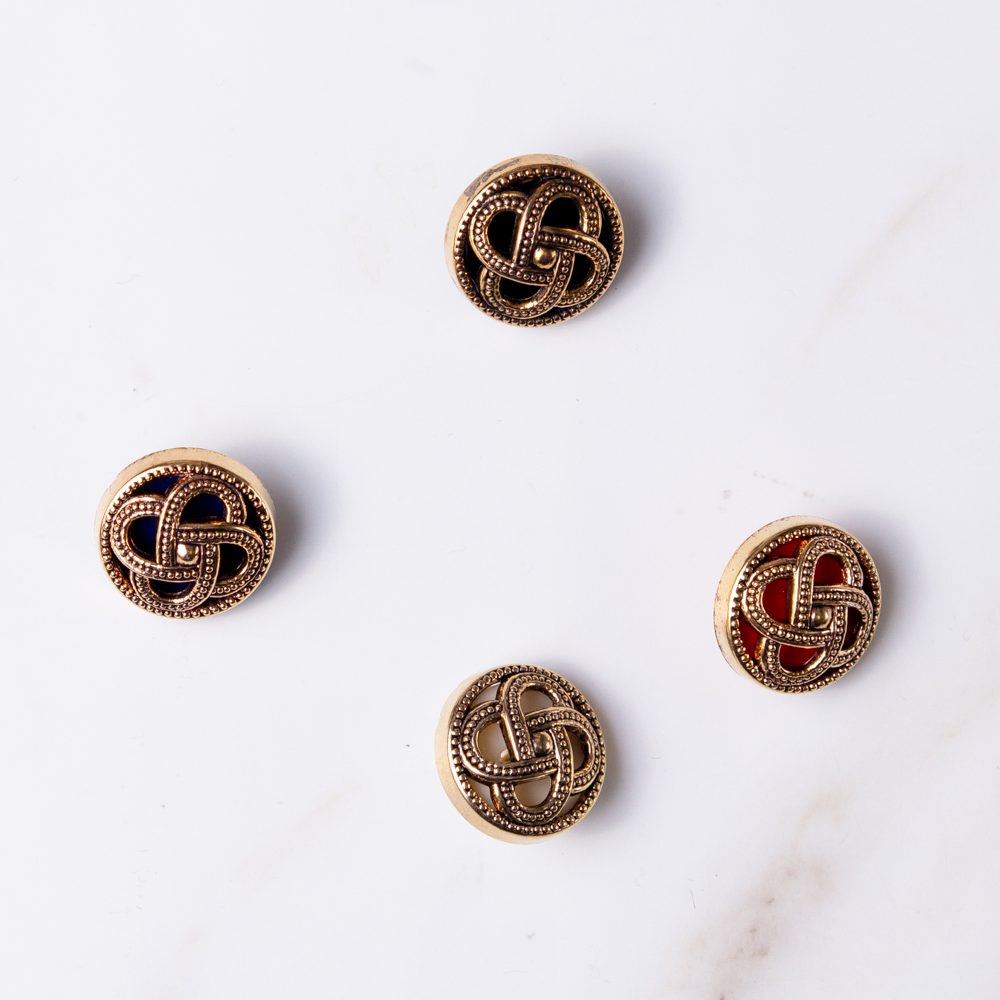 Round shank button, perfect for blazers and coats. Featuring a Celtic knotted effect.