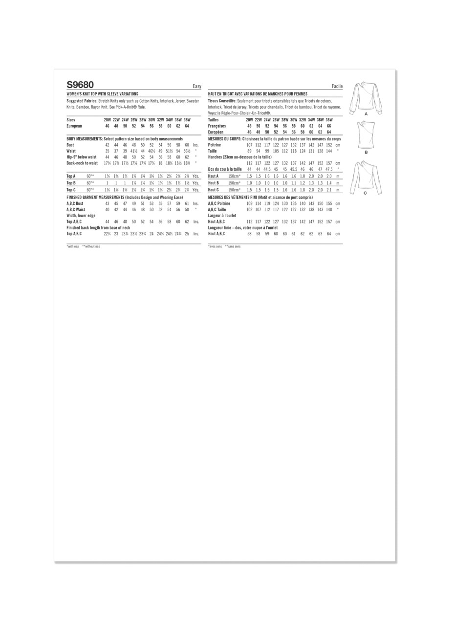 Knit tops have asymmetric cut-out along the shoulder for a sleek silhouette look. Top features long gathered sleeves with bands, long straight sleeves and sleeveless option.
