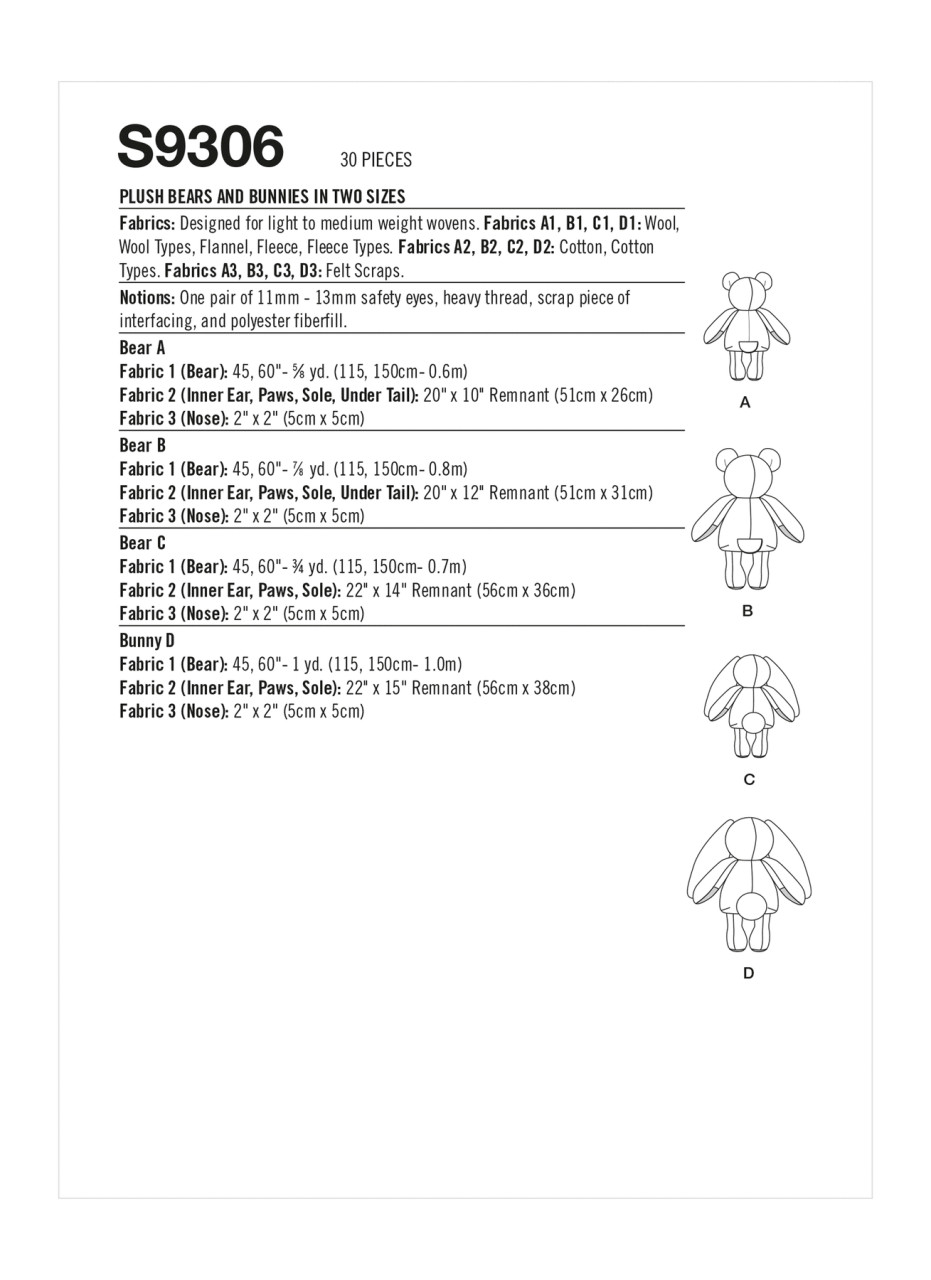 Endearing plush bears & bunnies will capture the hearts of both the young & the young at heart. Small bear A & bunny C measure 17" high; larger bear B & bunny D measure 21" high.