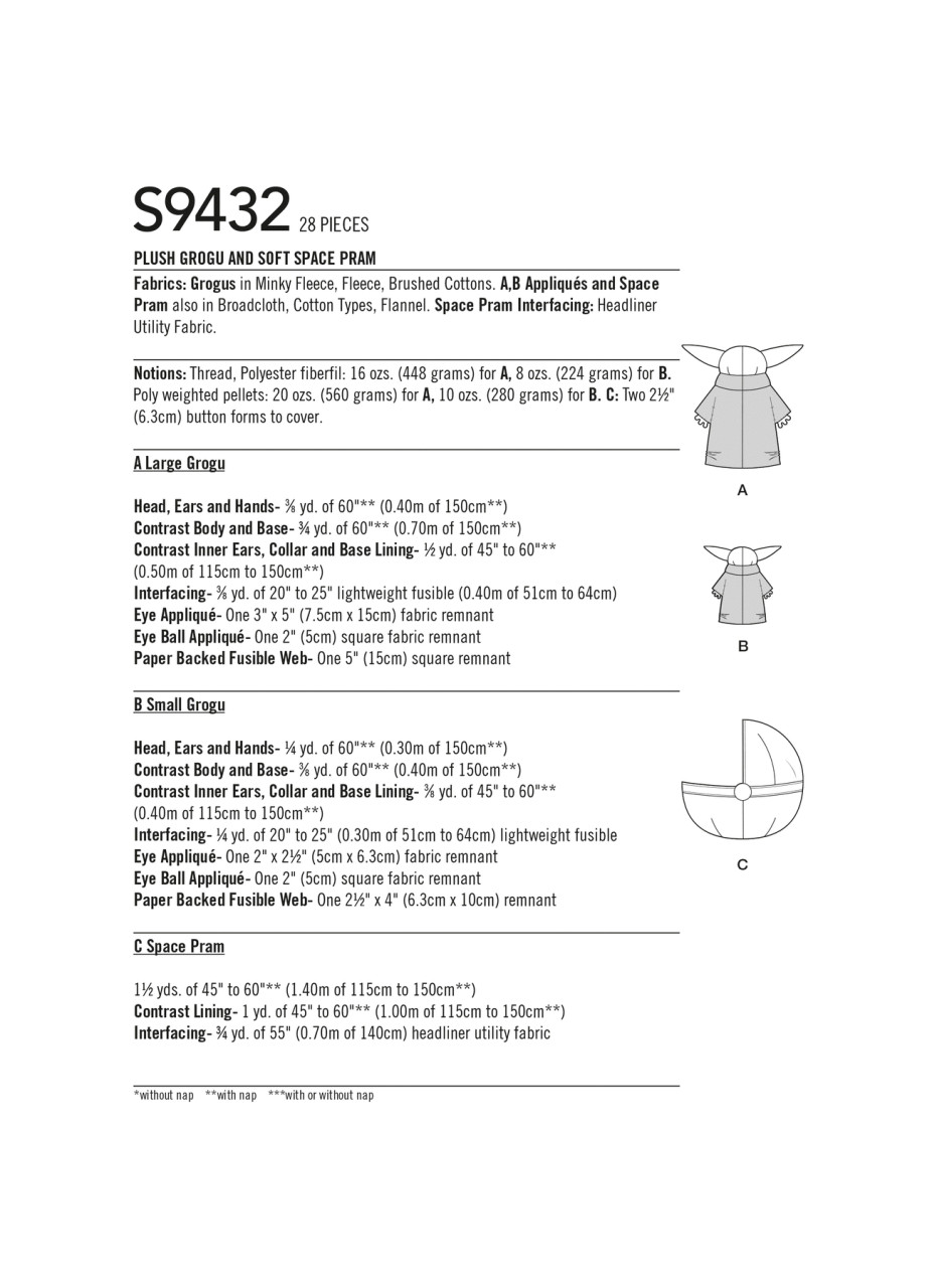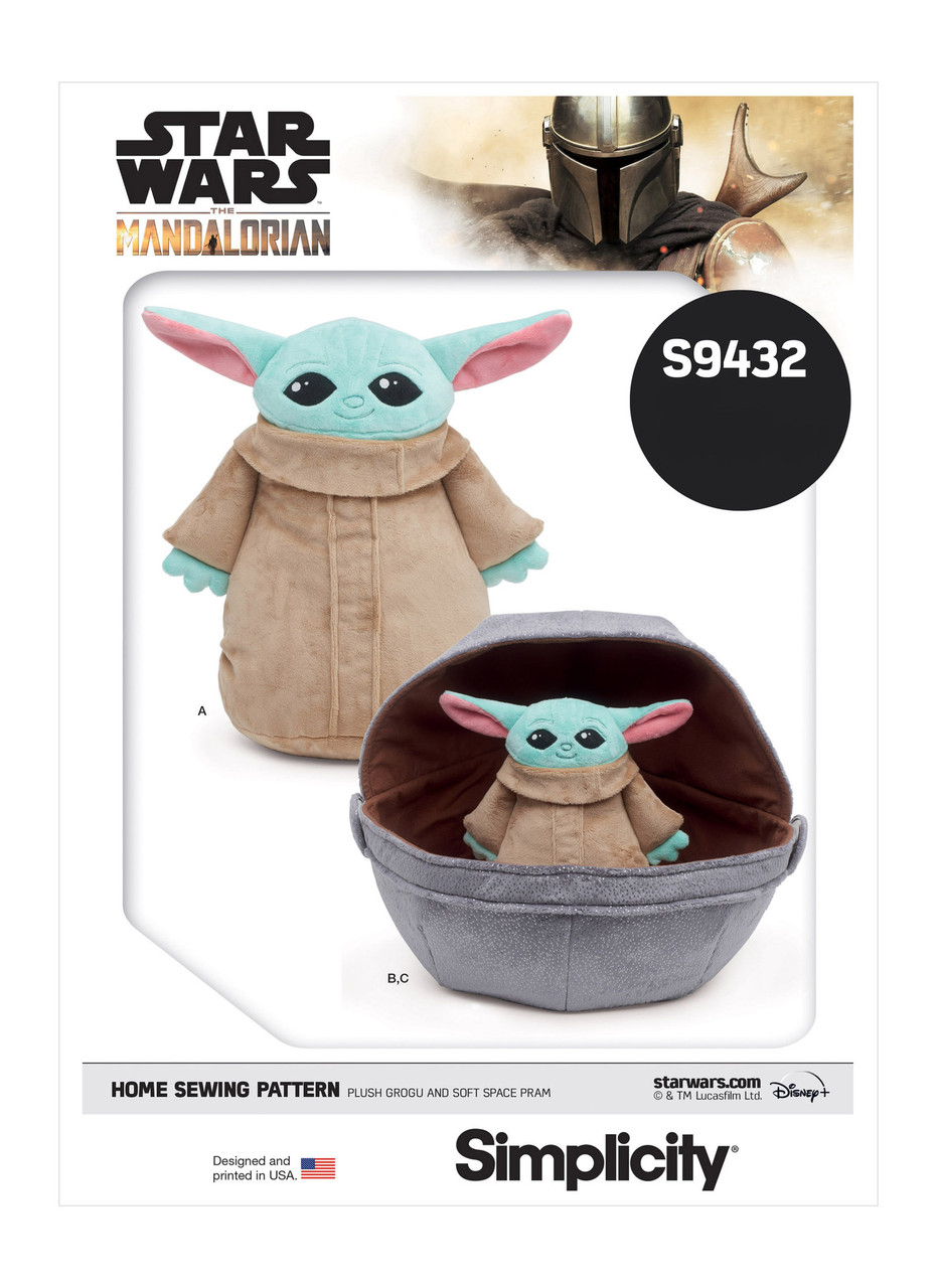 Cuddly soft Grogu in 21" and 11" heights have plush all-in-one body and head construction with stitched-in arms and 3D ears. With a round bottom and weighted with stuffing pellets, they stand alone or sit in a lined soft-sculpture space pram with covered button accents. Definitely Precious Cargo!
