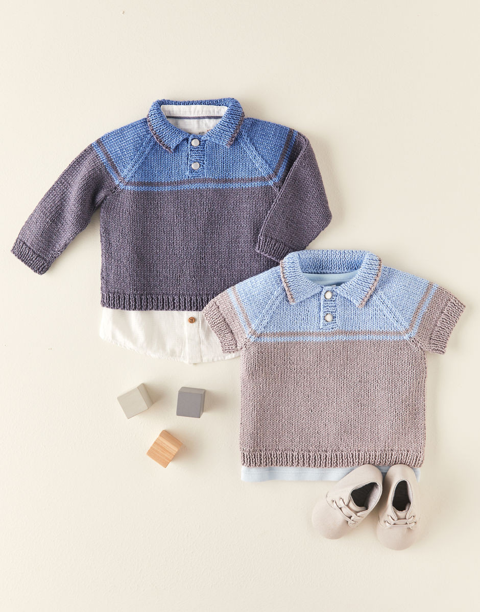 Update their wardrobe with this classic Snuggly polo top. With a ribbed collar and front button placket, this colourblock design is a timeless hit. Knit with your choice of long or short sleeves.