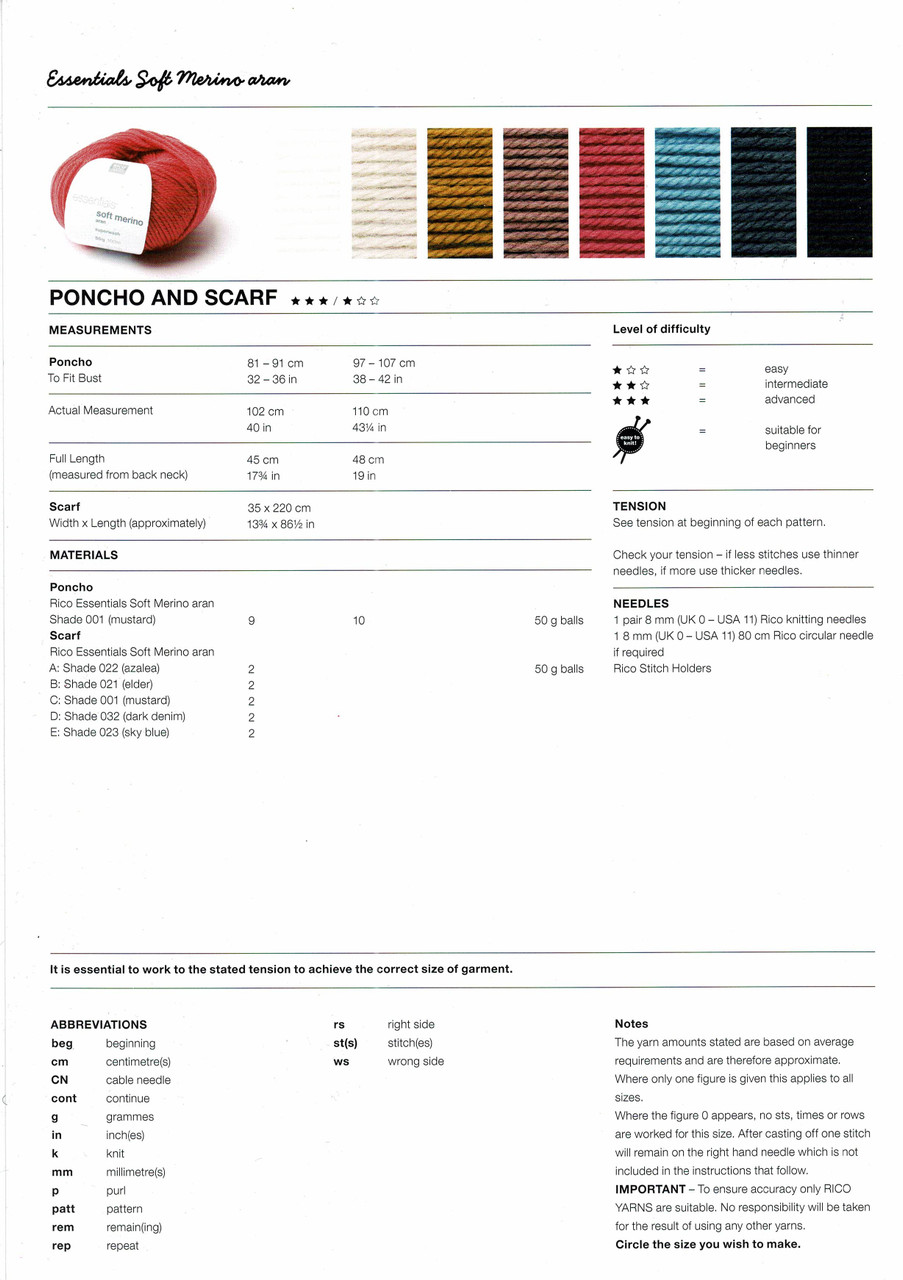 Poncho & Scarf in Rico Essentials Soft Merino Aran (953)