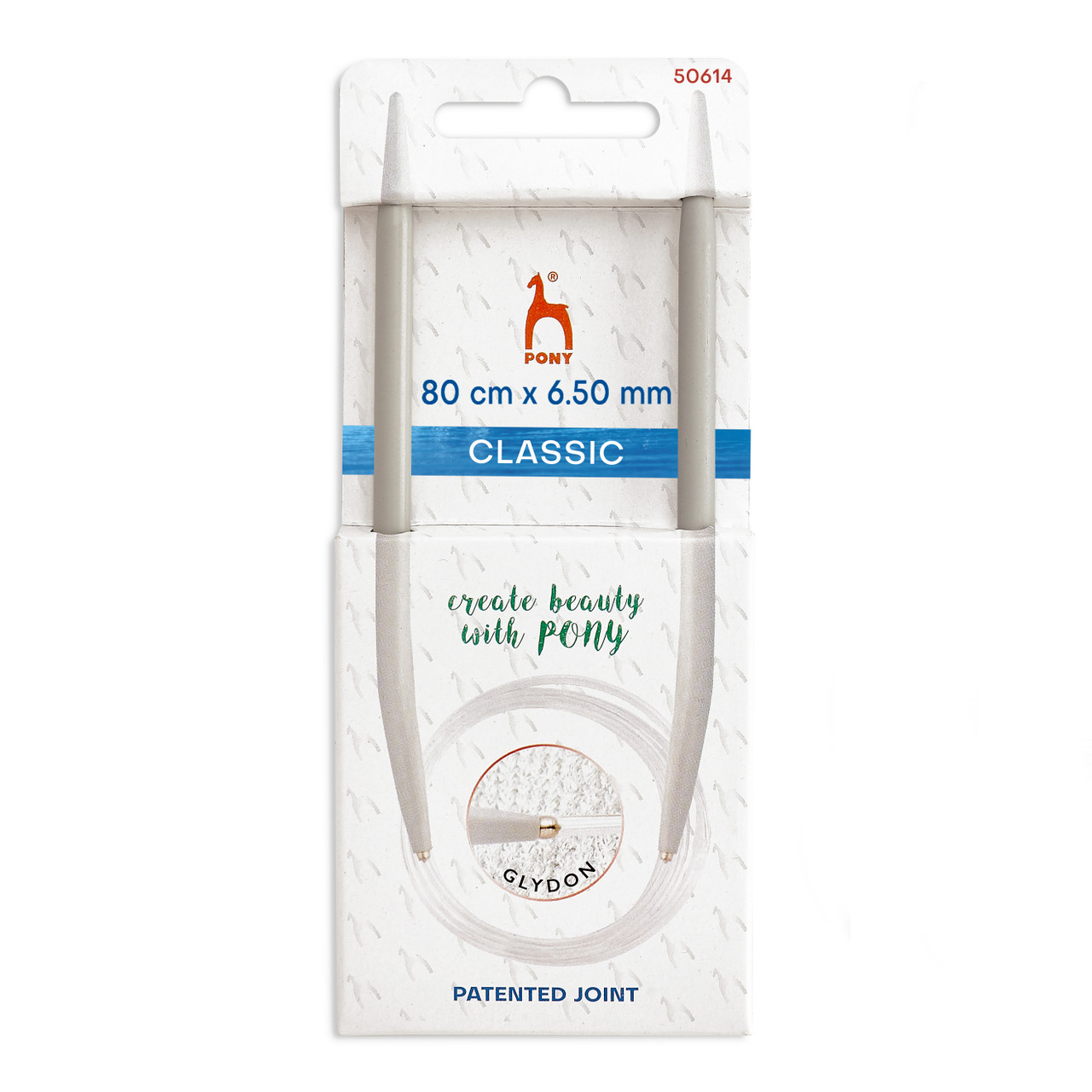 These traditional circular needles are a classic from Pony. Made from solid aluminium with smooth anodized silver grey finish, they are extremely lightweight and never lose desirability with changing trends. The patented Glydon joint between the needle and the cable ensures an ultra-smooth and snag-free transition of the stitches onto the clear and soft cable. The gently tapered needles in combination with the Glydon joint make Pony circular needles unique in providing uncompromising comfort and excellent performance.