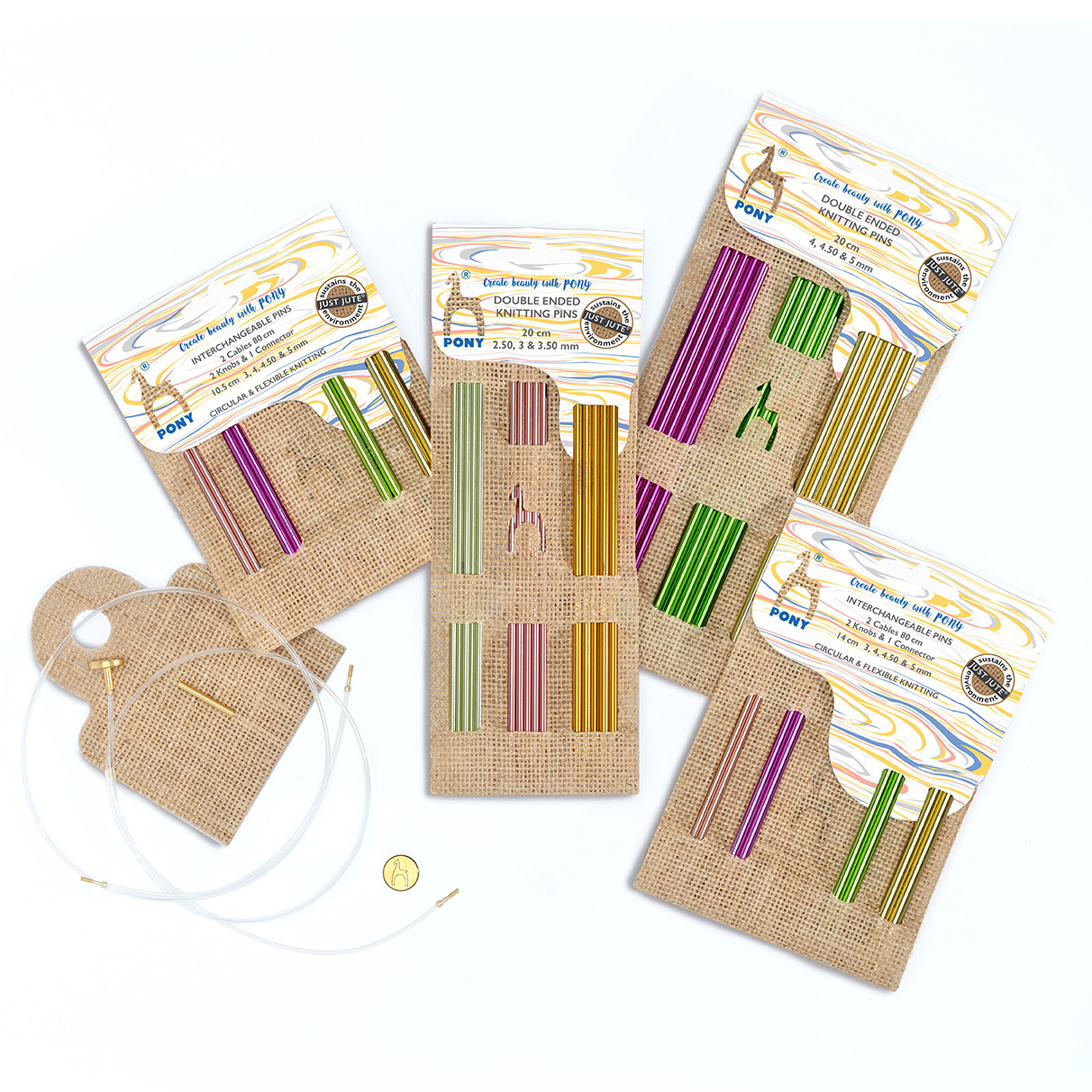 - Create beauty with Pony Coloured interchangeable pins. 2 cables 80cm, 2 knobs & 1 connector, 10.5cm 3mm, 4mm, 4.5mm & 5mm (14cm).