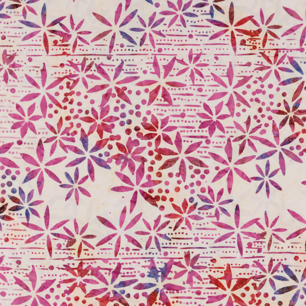 Floral pattern in pink and purple tie-dye on a neutral background. Beautiful, high quality, printed cotton fabric. Ideal for quilting, masks, crafts, displays, table decoration and as a dressmaking fabric.