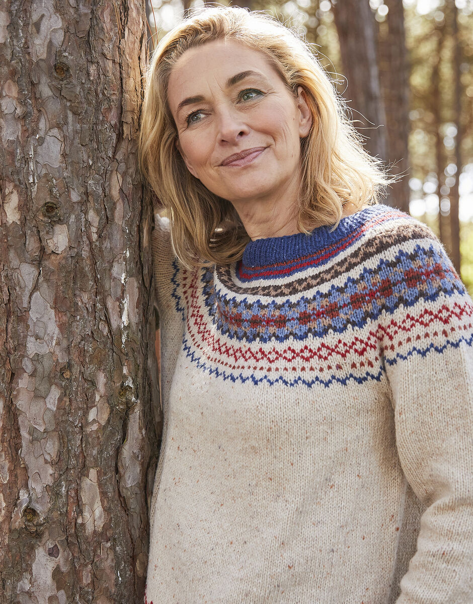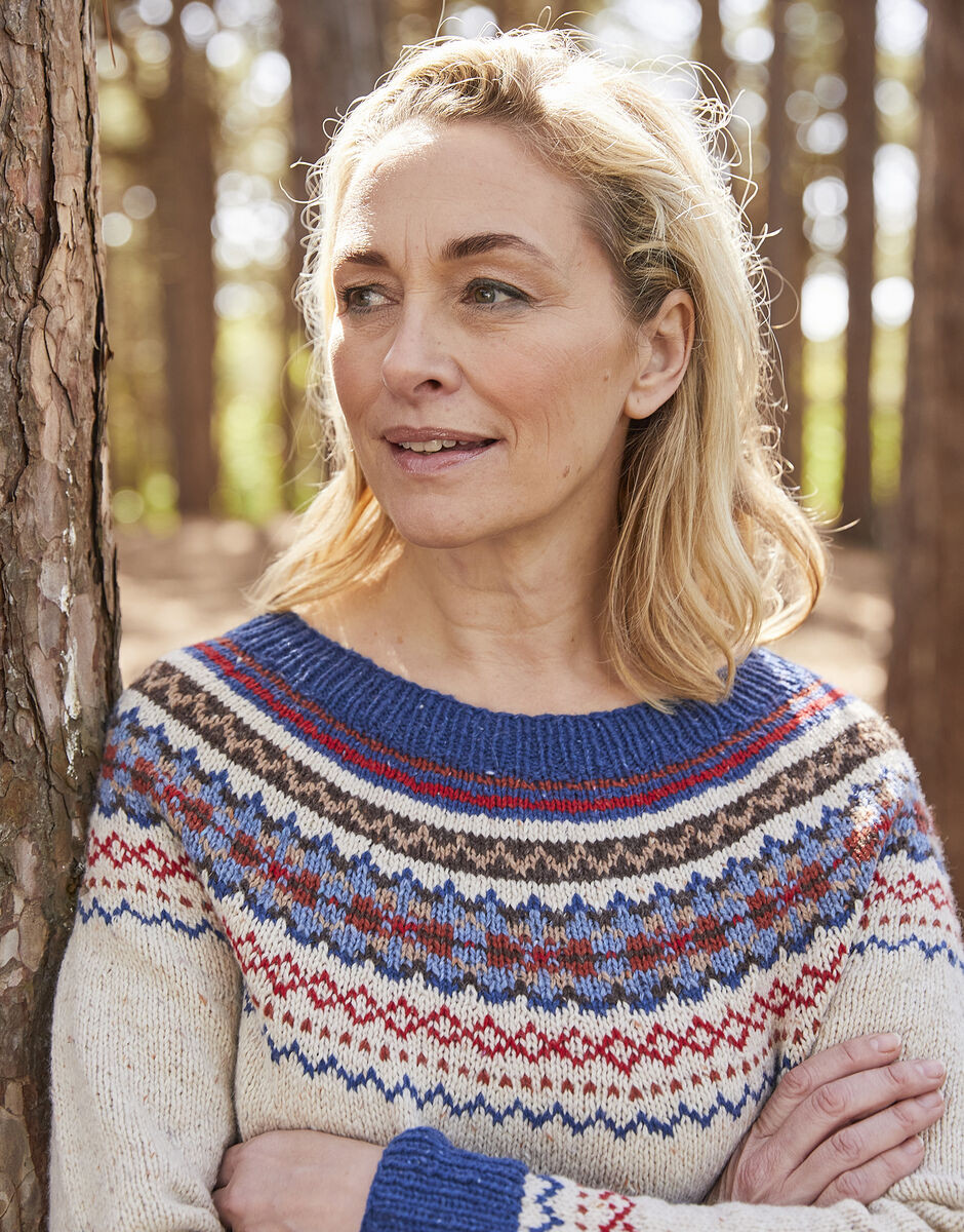 Knitting the Rambling Sweater top-down and in-the-round means there’s less sewing up so you can focus on the traditional Fair Isle knitting pattern which uses seven shades of Sirdar Haworth Tweed and was inspired by the shapes and shades of the British countryside.