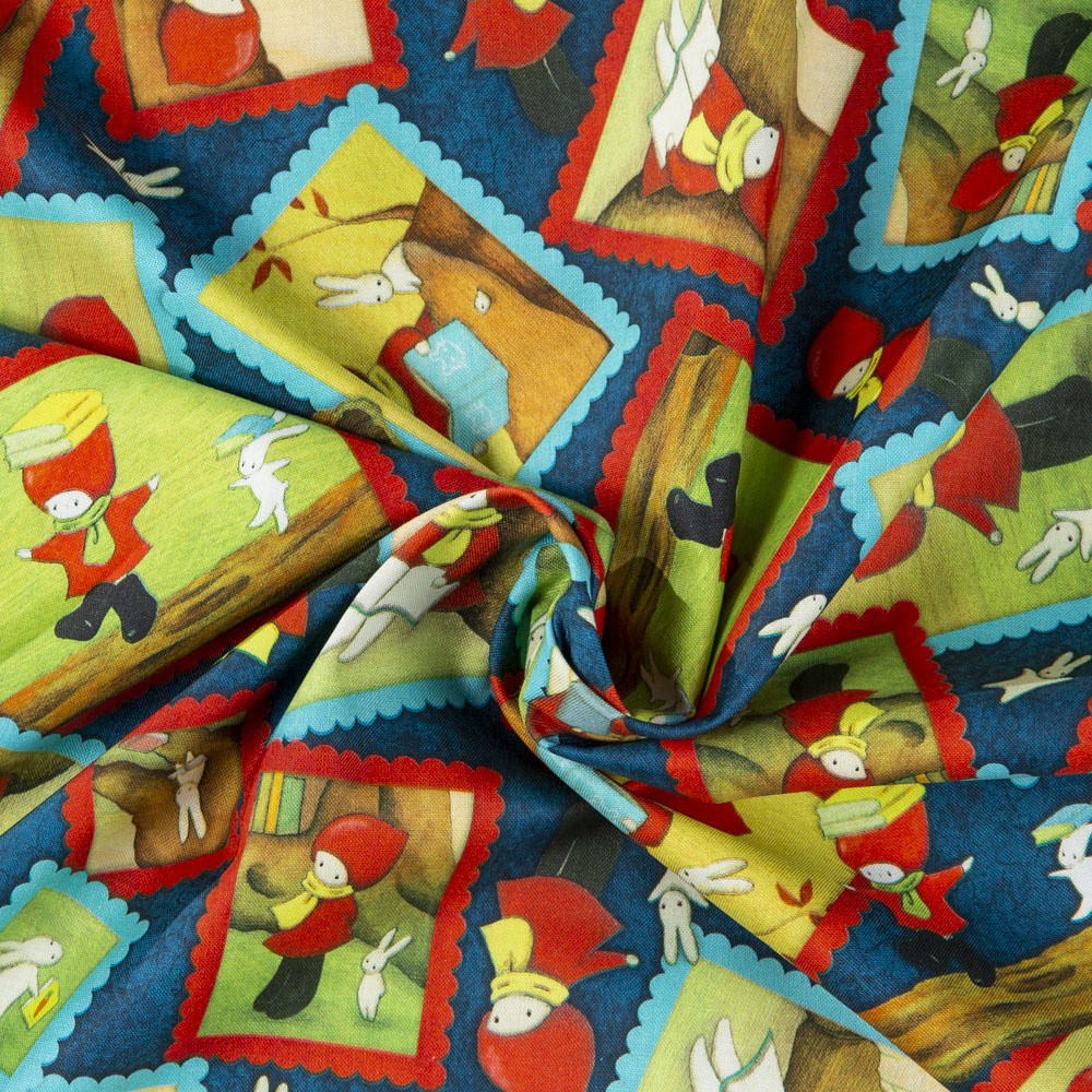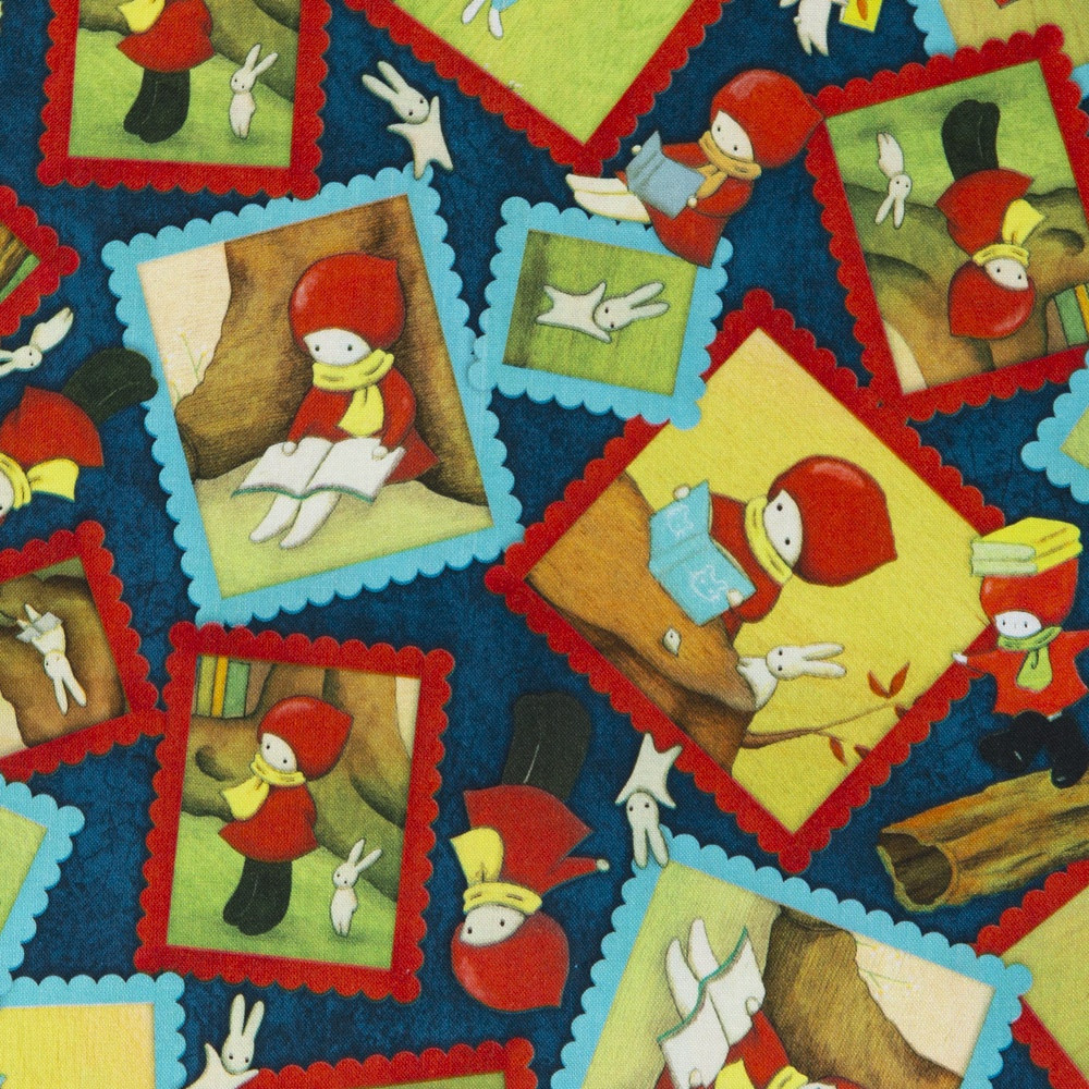 Large scale print of character stamps. Beautiful, high quality, printed cotton fabric. Ideal for quilting, masks, crafts, displays, table decoration and as a dressmaking fabric.