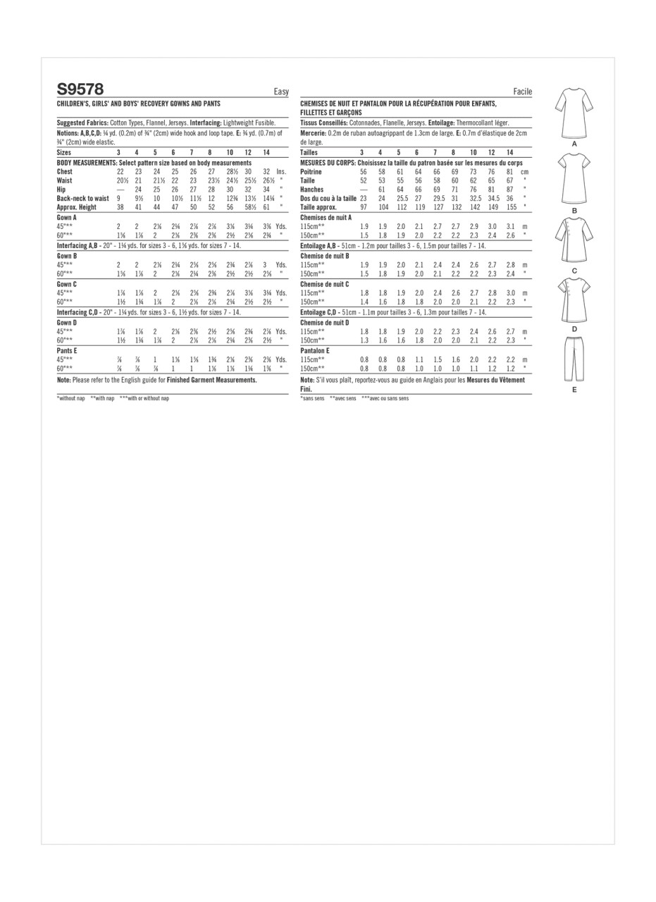 Recovery Gowns & Pants in Simplicity Kids (S9578)