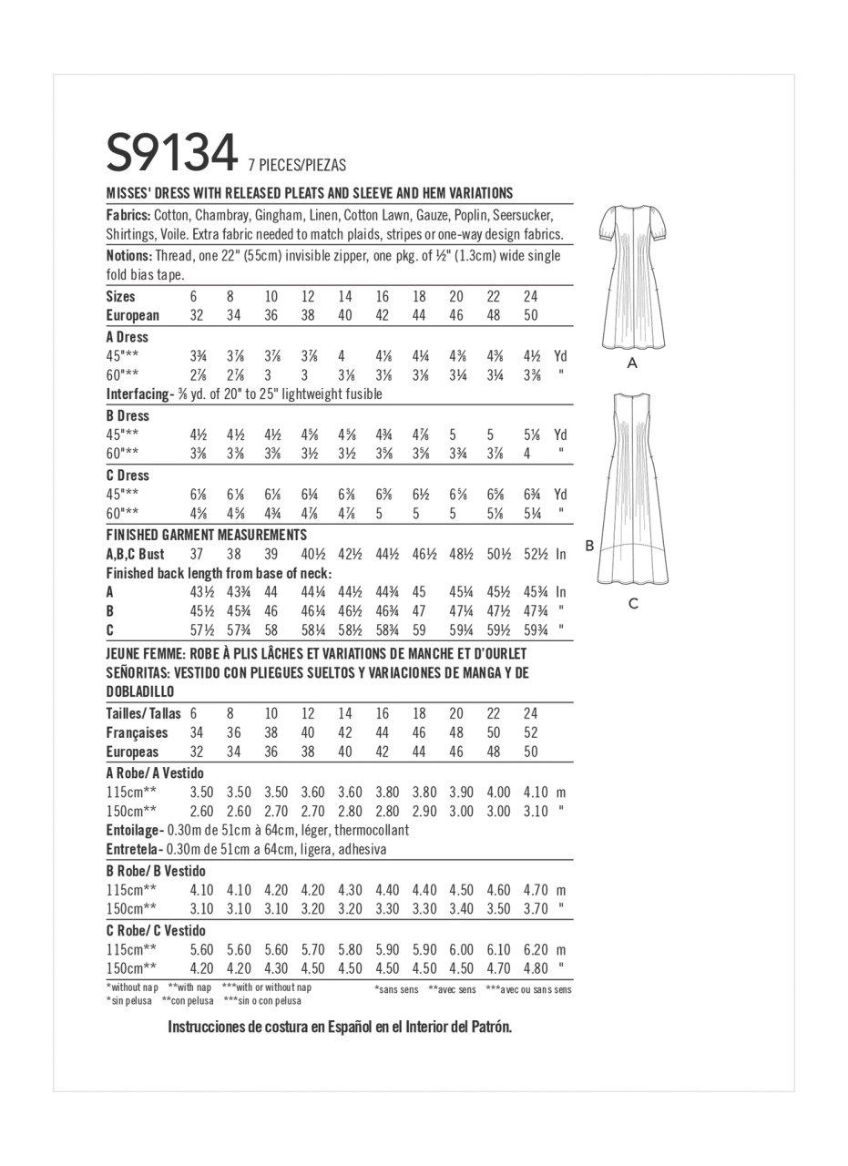 Released Pleat Dress in Simplicity Misses' (S9134)