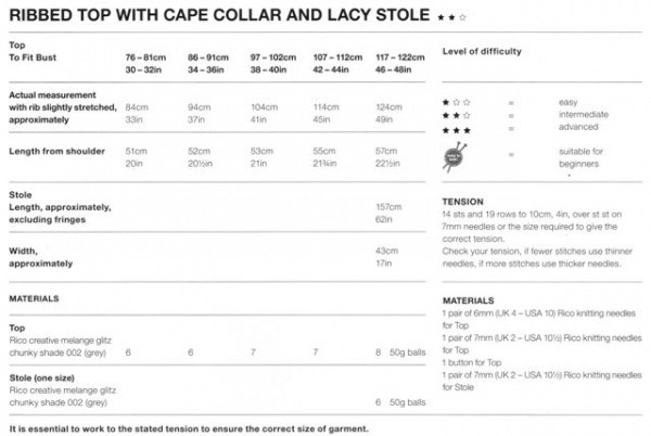 Ribbed Top with Cape & Collar & Lacy Stole in Rico Creative Melange Glitz Chunky (264)