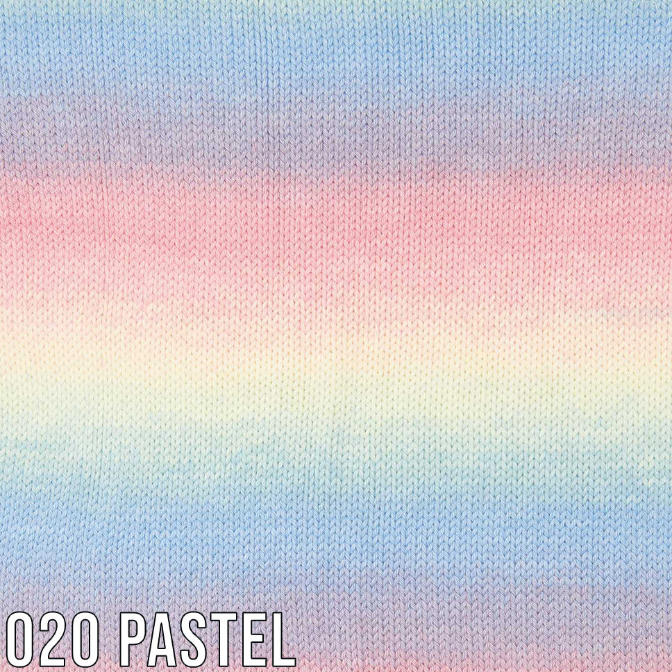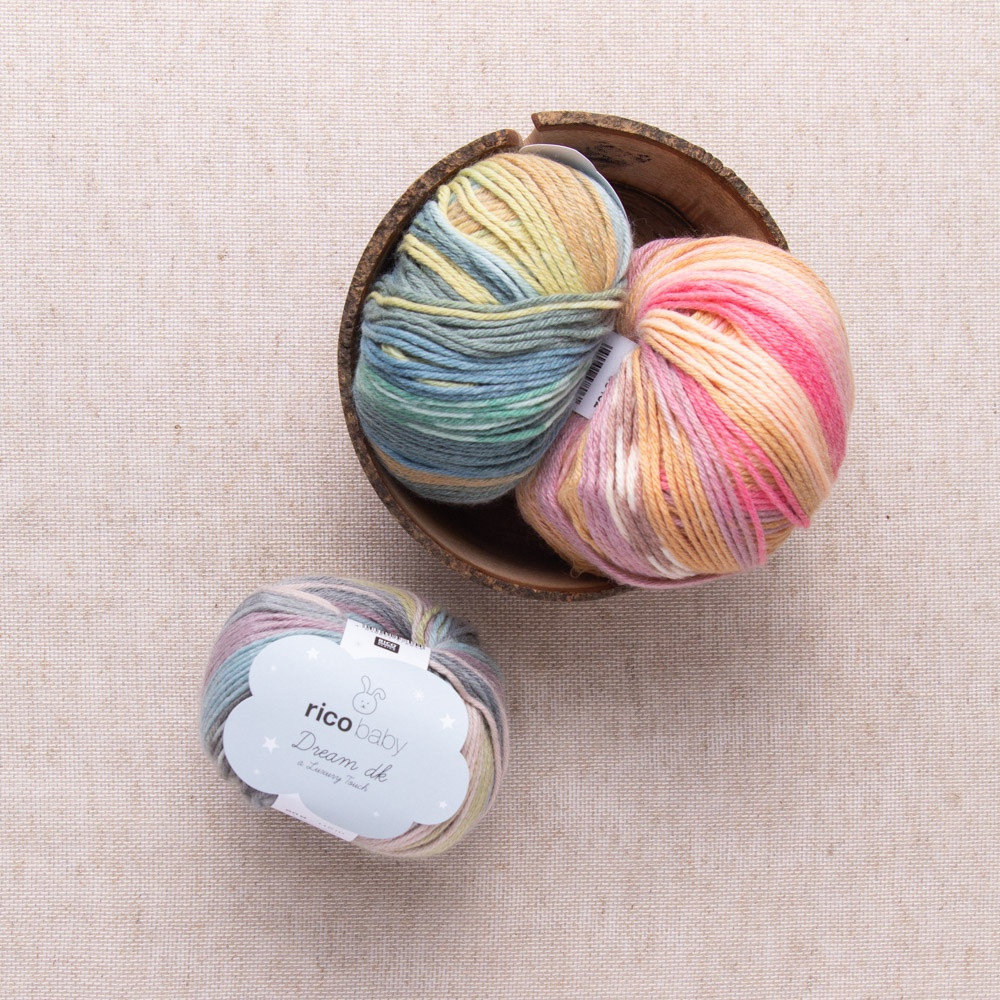 This baby DK yarn comes in beautiful variegated colours, a perfect yarn to knit for little tots! A mix of acrylic and polyamide yarn, it's easy to care for, versatile and durable, machine washable, as well as lovely and soft.
