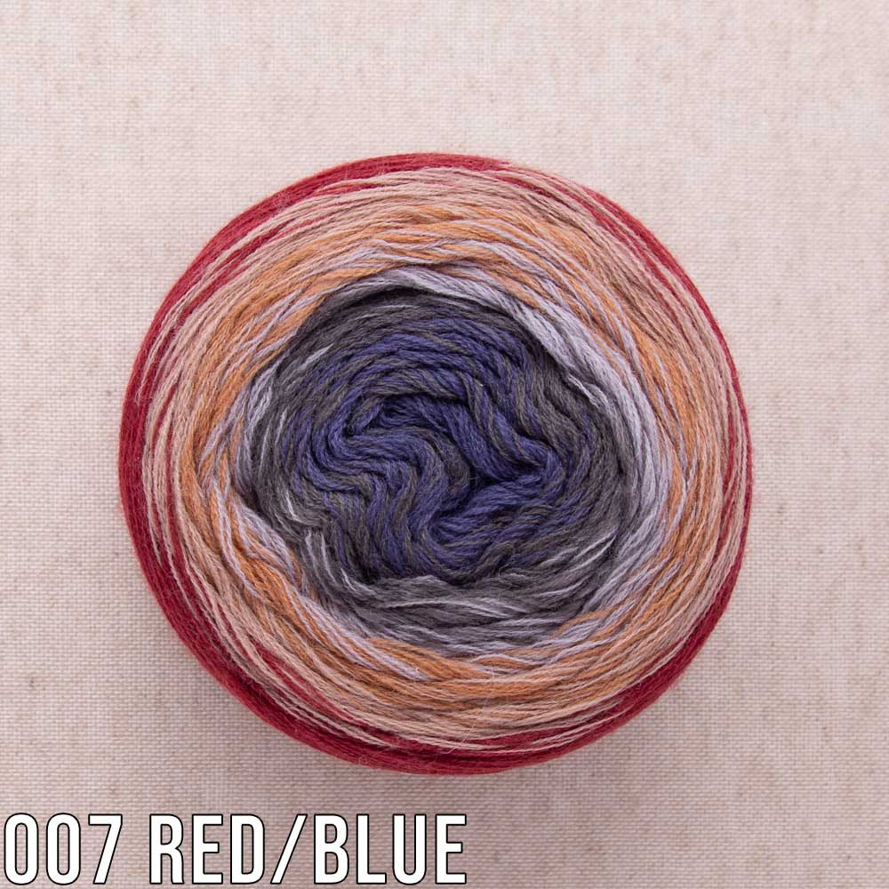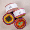 Created by four thin threads in different shades spun together to create a rich unique colour filled product. Each ball was wrapped around a cylinder by hand, which provides insight into the exciting colour gradient and a spectacular optic.