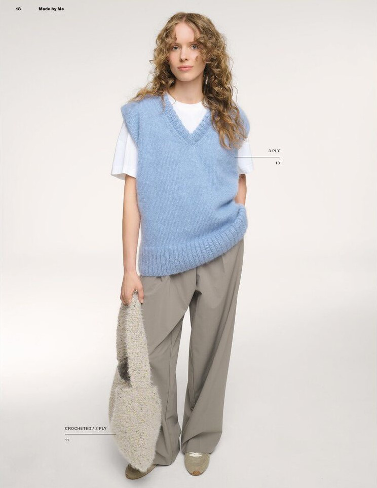 The Spring/Summer edition of the hand-knitting magazine Made by Me presents high-quality yarns in the trendiest colors, unusual cuts, and impressive patterns for a modern spring and summer wardrobe. The designs showcase current trends, fresh styles, and diverse textures that will enrich the season both visually and creatively. Shirts, hats, bags, scarves, vests, jackets, and tops form a versatile collection that impresses with special details, creative pattern combinations, and on-trend color palettes. Each piece makes its own fashion statement and invites you to personalize the season with individual, hand-knitted designs.