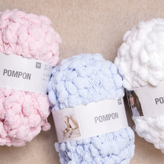 Rico Pompon yarn can be used in lots of different ways. A favourite for baby blankets and Super Bulky scarves, Rico Creative Pompon is yarn with pompoms built in! A thick, cosy fabric is created as you knit! Great fun and the perfect gift! Knits up fast on 3.5mm - 4.00mm needles.