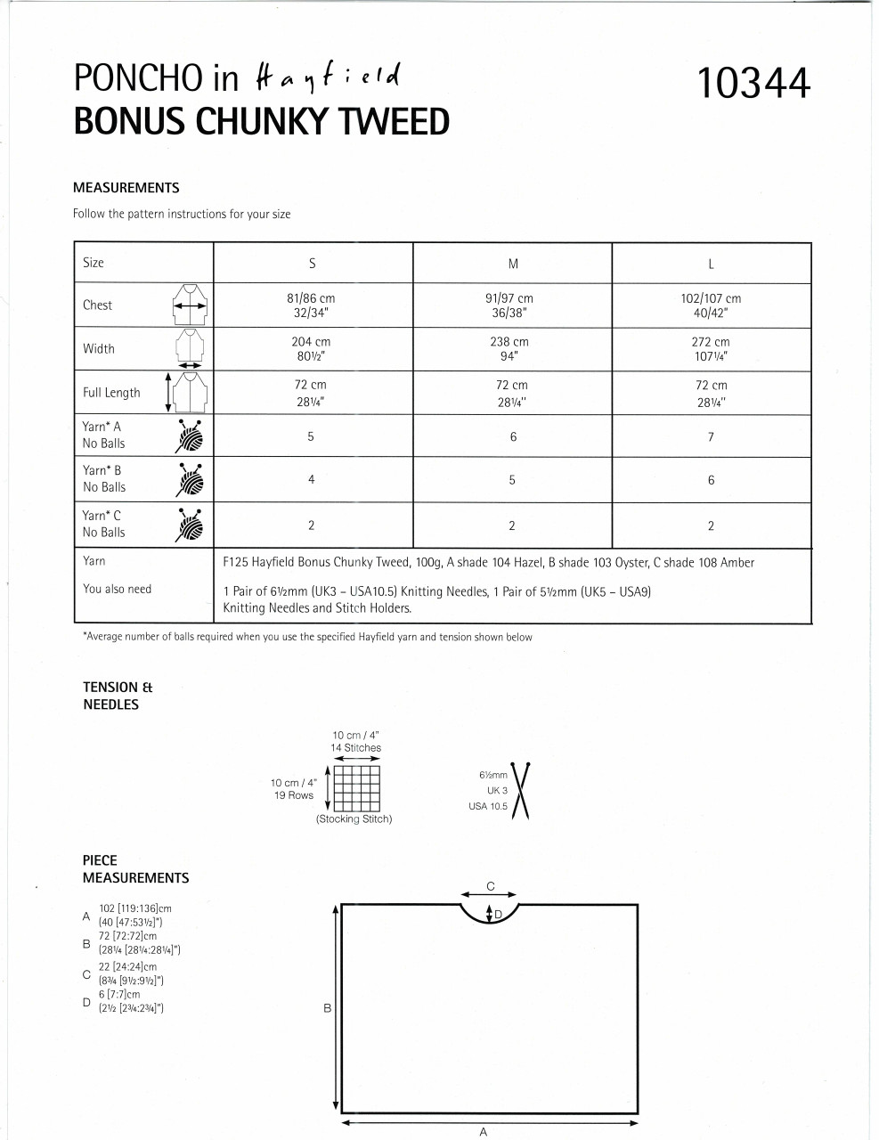 - 1 Pair of 6½mm (UK3 – USA10.5) Knitting Needles, 1 Pair of 5½mm (UK5 – USA9) Knitting Needles and Stitch Holders.