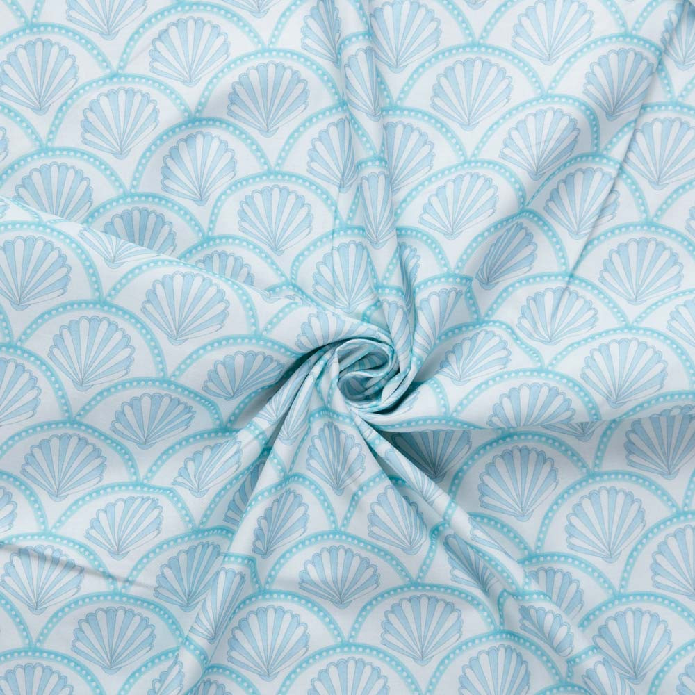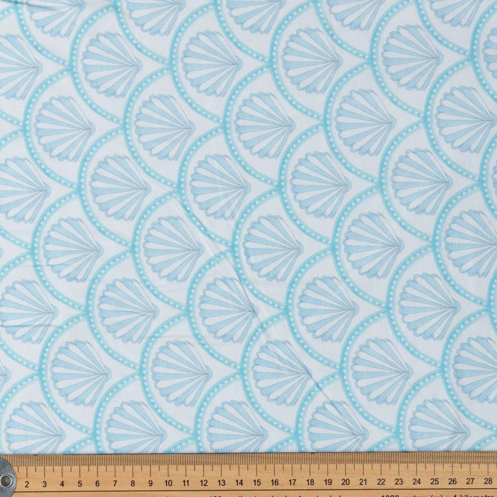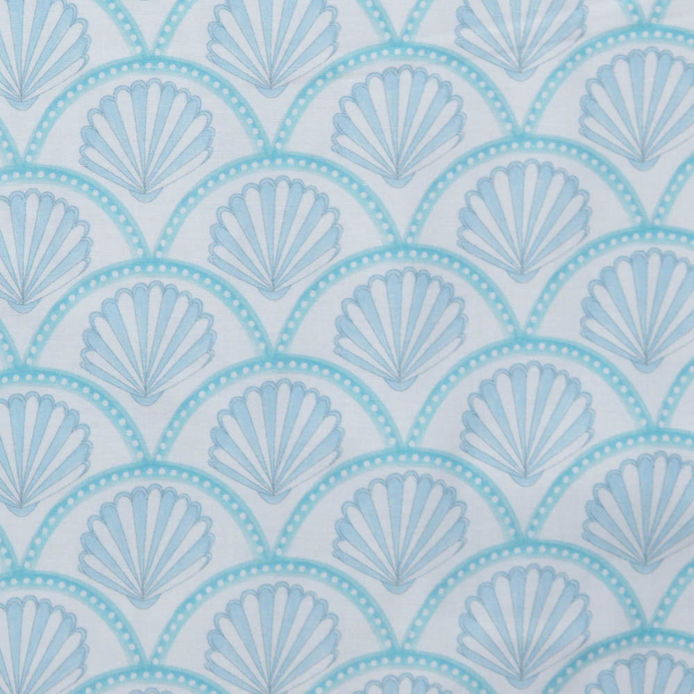 A collection of pastel, nautical themed fabrics, featuring sea creatures, shells, textures, deckchair stripes and ginghams. Designed by Holly Dennett. Perfect for spring/summer dressmaking projects, quilting and crafting.