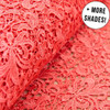 Lace can be both delicate and Victorian-inspired or edgy and alluring. Whichever side you choose, this Scalloped Corded Guipure Lace is sure to do the job. It features beautiful vine and scroll patterns and comes with tastefully finished edges. With its crisp, thin hand, this lace falls into a voluminous drape, making it ideal for almost any kind of dress silhouette. You can also use it as an overlay or a cover-up in many different contexts. As it is sheer, insert a lining for more opacity if so desired.