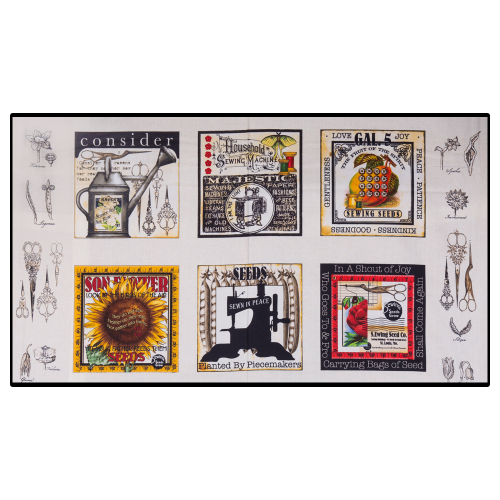 Stunning gardening inspired panel. Quilting panels are a great, fun & easy way to make wallhangings, quilts, placemats, aprons, cushions, toys and more. We have a growing selection of fabric panels that include children's and adult's prints plus a variety of novelty prints.