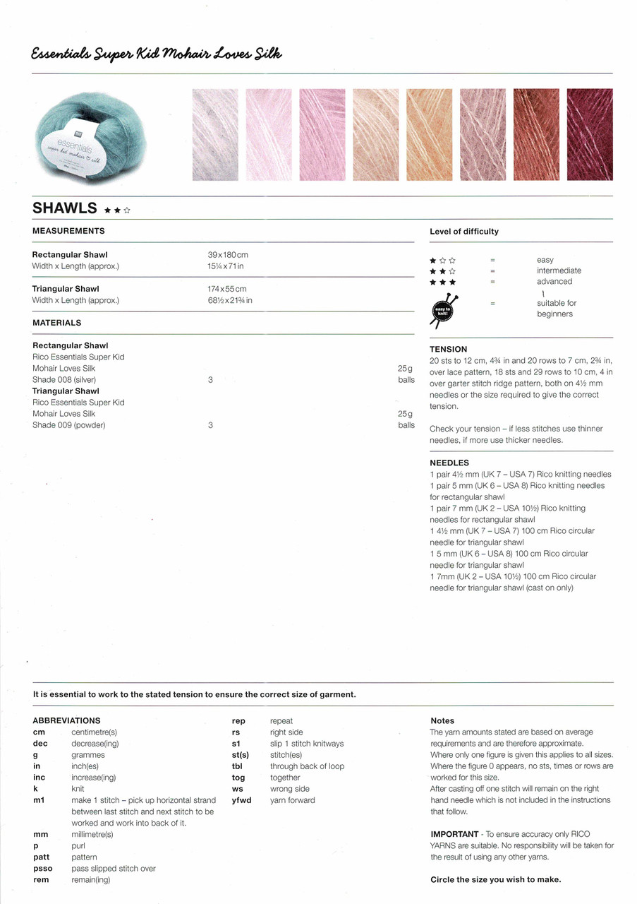 Shawls in Rico Essentials Super Kid Mohair Love Silk (712)