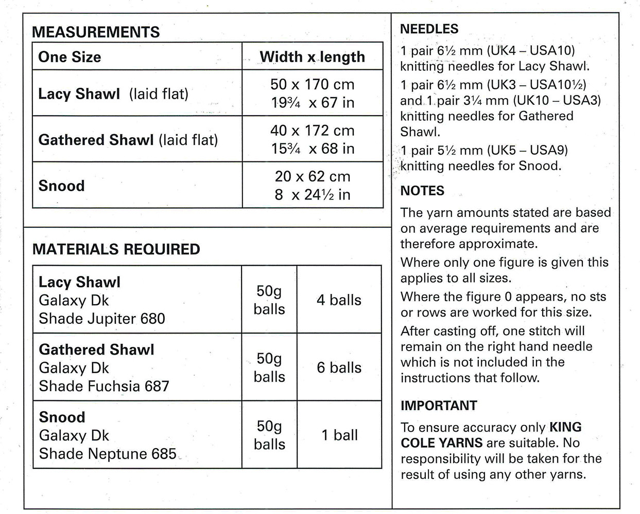 Shawls & Snood in King Cole DK (3462)