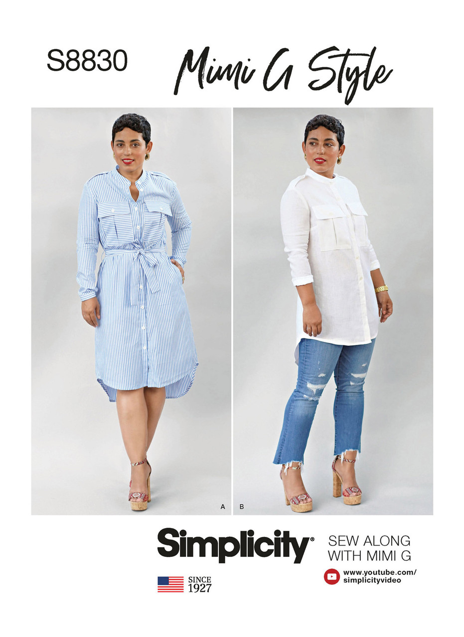 Misses'/Miss Petite shirt dress from designer Mimi G. Features working epaulets on shoulder and functional breast pockets. Design also includes side pockets and tie belt. Mimi G Style for Simplicity. Sew Along Video at www.youtube.com/simplicityvideo