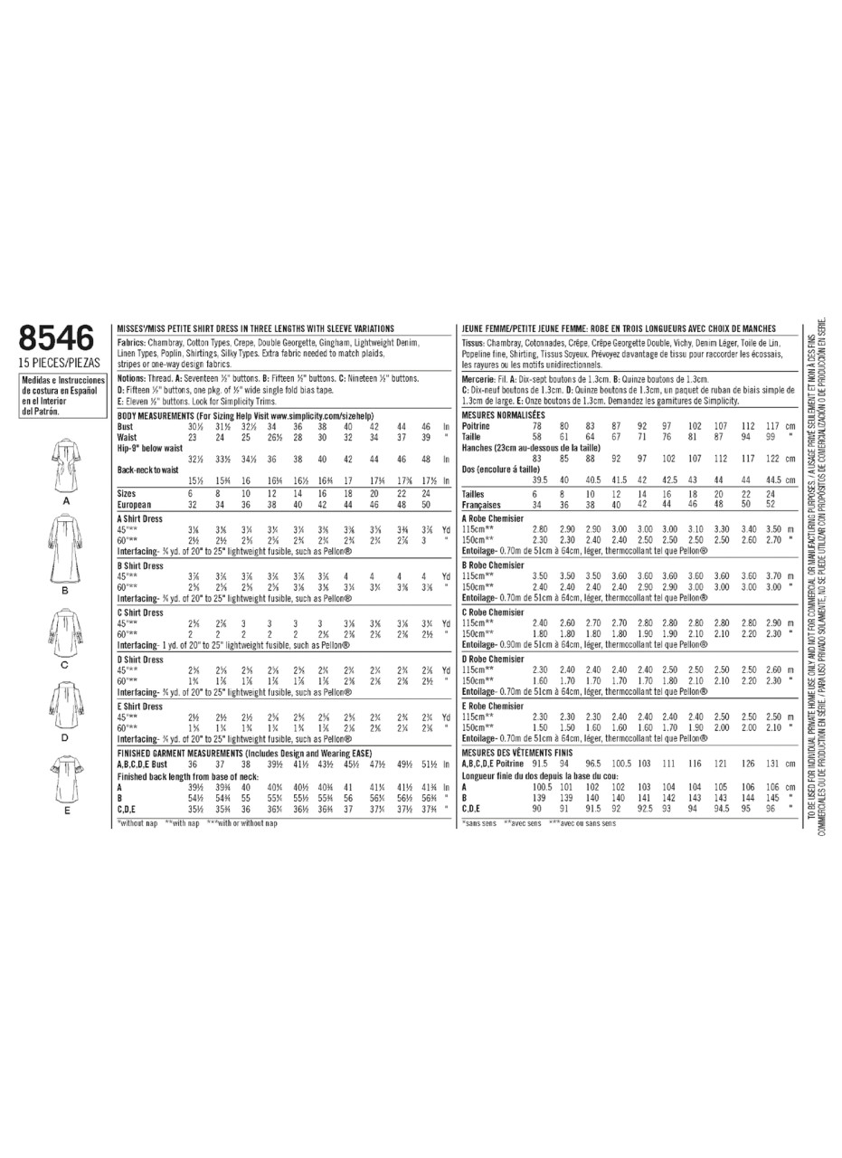 Shirt Dresses in Simplicity Women's & Petite (S8546)