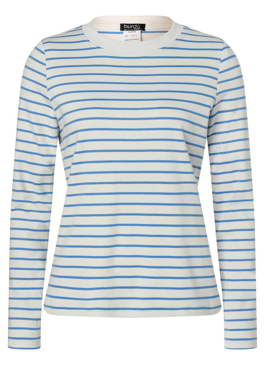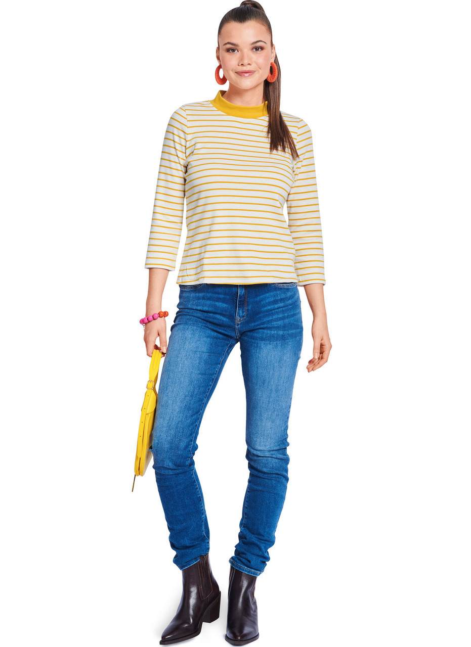 This shirt pattern offers three easy-to-sew styles. Version 1 is a beige long sleeve with blue stripes. Version 2 has yellow stripes, 7/8 sleeves, and… Read More