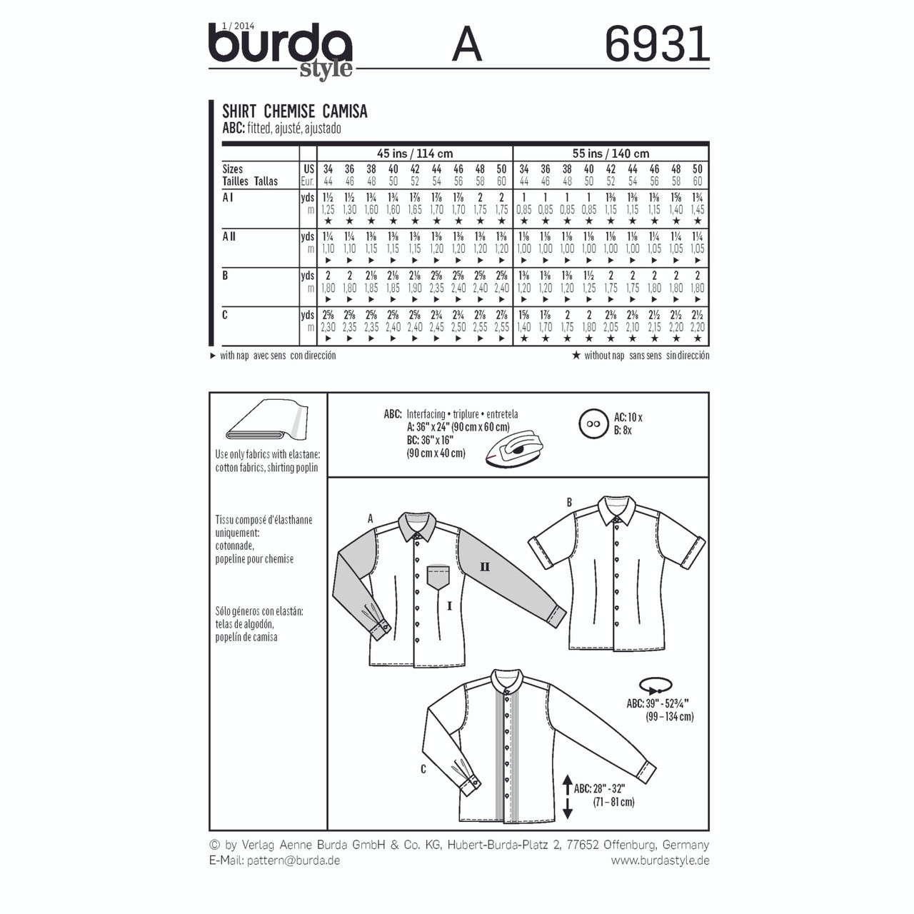 Shirts fitted to the waist are in vogue. The color blocks of variant A are fresh and trendy. Short-sleeved, plain variant B for midsummer days. Shirt C with stand-up collar and ornamental tiny tucks.
