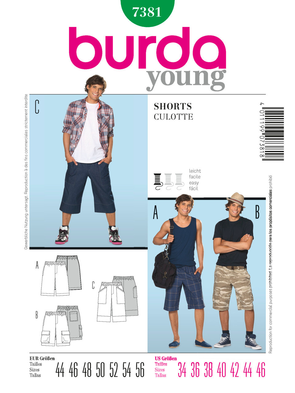 These Men's shorts are great for leisure wear, vacation and the beach. Sew in a solid color, plaid, hawaiian print, or camouflage fabric—all sure to be a hit. Featuring comfortable in-seam pockets, patch pockets or bellows pockets.