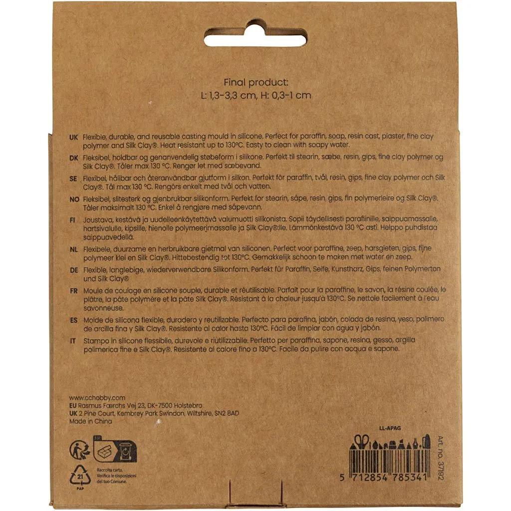 Perfect for stearin, soap, resin, plaster, jewellery clay, and Silk Clay®. Oven safe at 130 degrees. Durable silicone – a flexible material that makes… Read More
