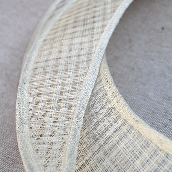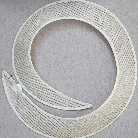 A large light cream sinamay hat brim, use this piece to embellish a hat making project and to add shape and texture for a wedding or special event.