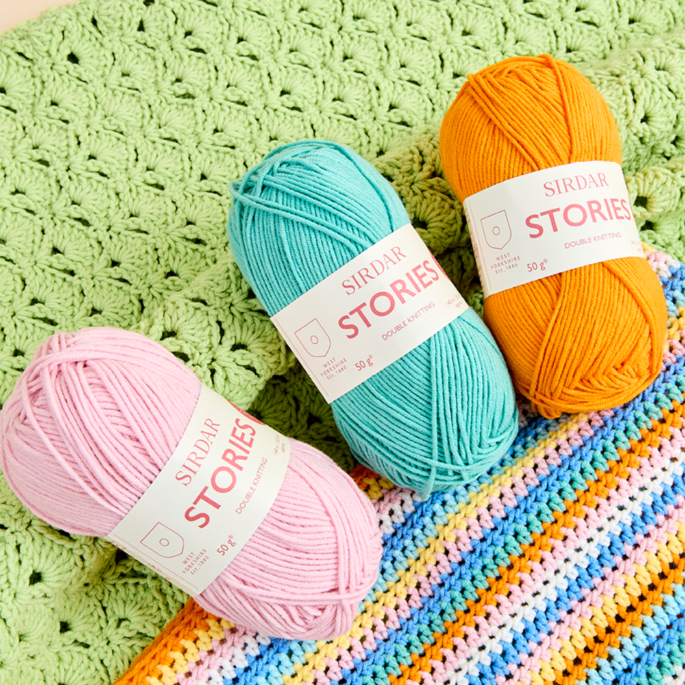 We created Sirdar Stories especially for fashionable womenswear and the 50g balls are perfect for colourful makes from granny squares to stripy knits.