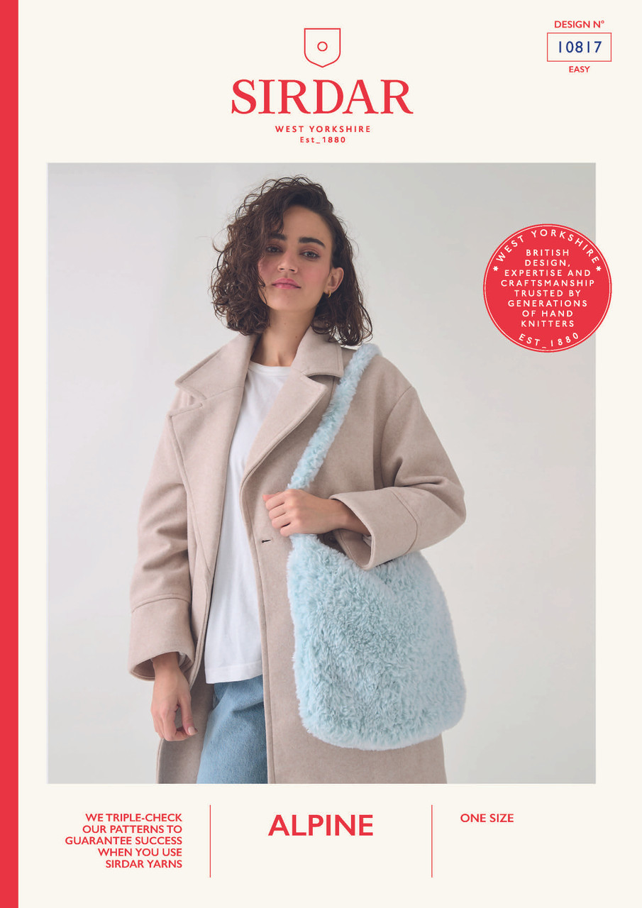 The perfect furry bag for all your winter essentials. This is a beginner friendly project, ideal as a quick knit for yourself or to make as a gift. Choose your favourite fluffy shade of Sirdar Alpine or make one to match every outfit.
