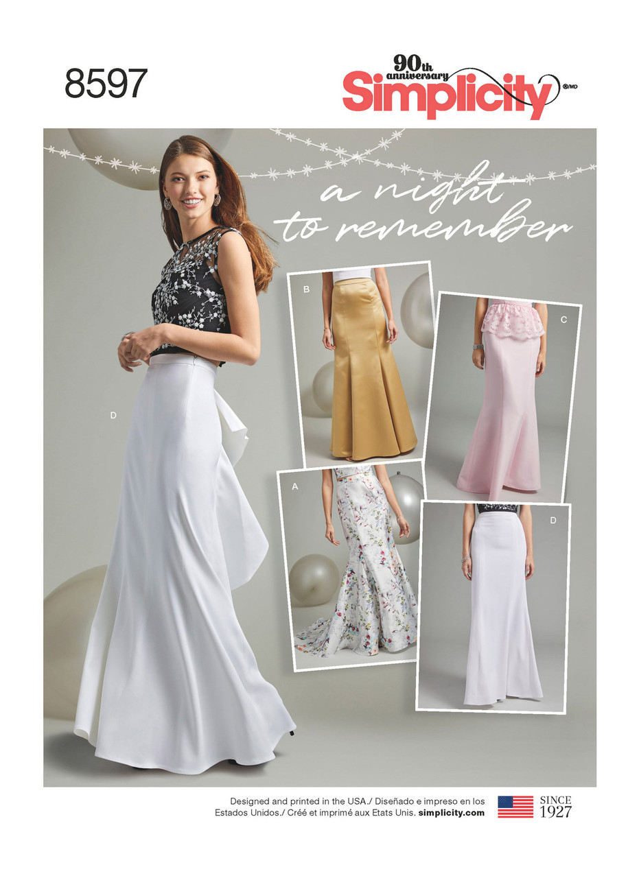 Mix and match your prom or special occasion look with these skirt sewing patterns sized for miss 8 - 16 and women 18W-26W. Silhouettes includes fishtail with and without train, mermaid with optional back flounce. All views include flattering princess seams. Great for floral, embellished and 3-D fabrics. See pattern 8598 for tops