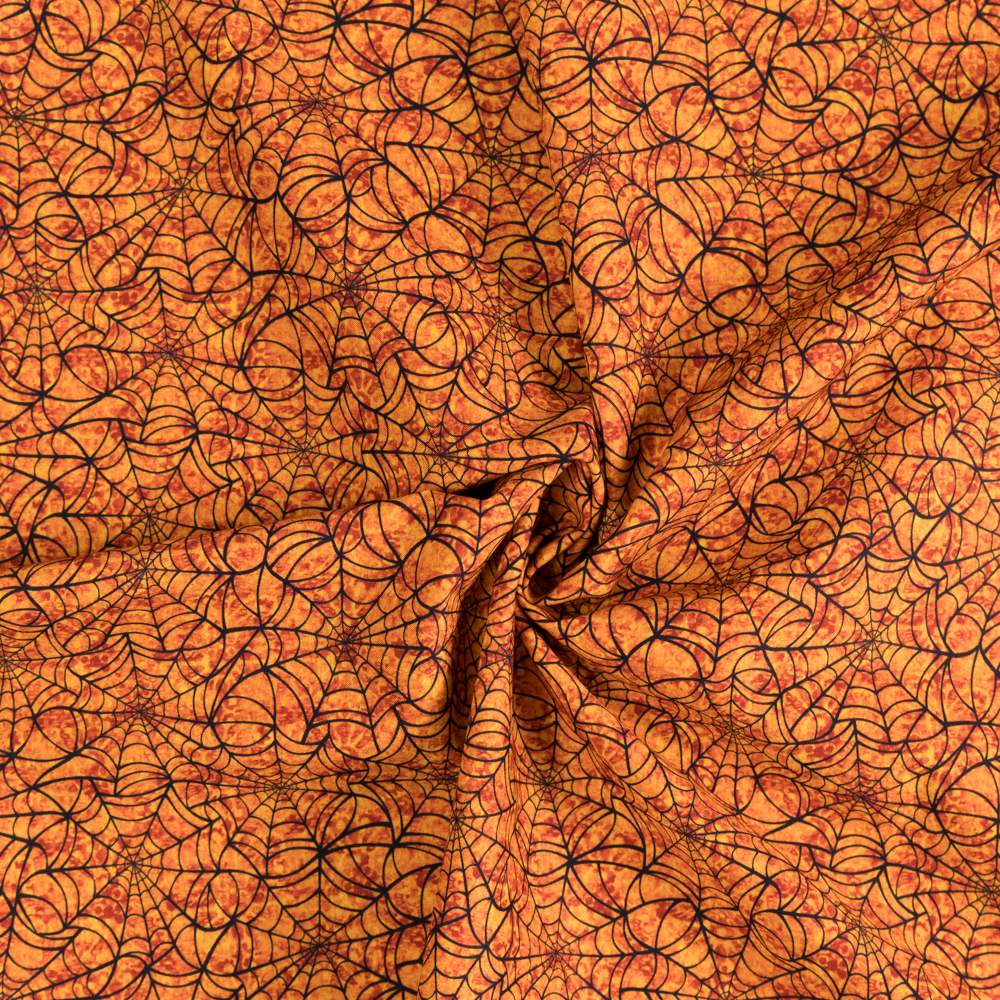 Spiderwebs create this spooky, geomtric pattern on orange. Beautiful, high quality, printed fabric. Ideal for quilting, masks, crafts, displays, table decoration and as a dressmaking fabric.