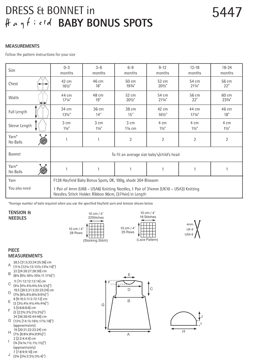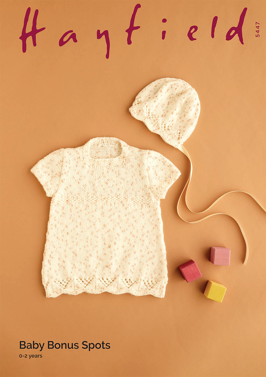 Spotty Dress & Bonnet in Hayfield Baby Bonus Spots DK (5447) - PDF