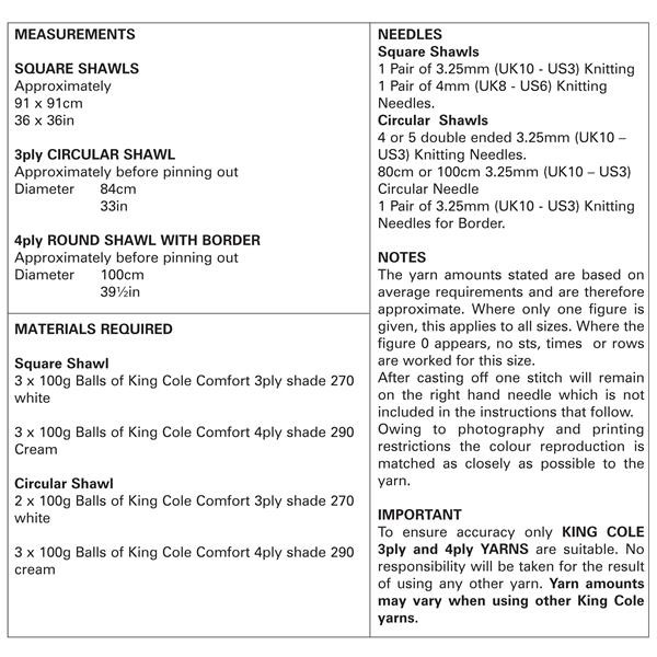 Square & Circular Shawls in King Cole 3 Ply & 4 Ply (4943)