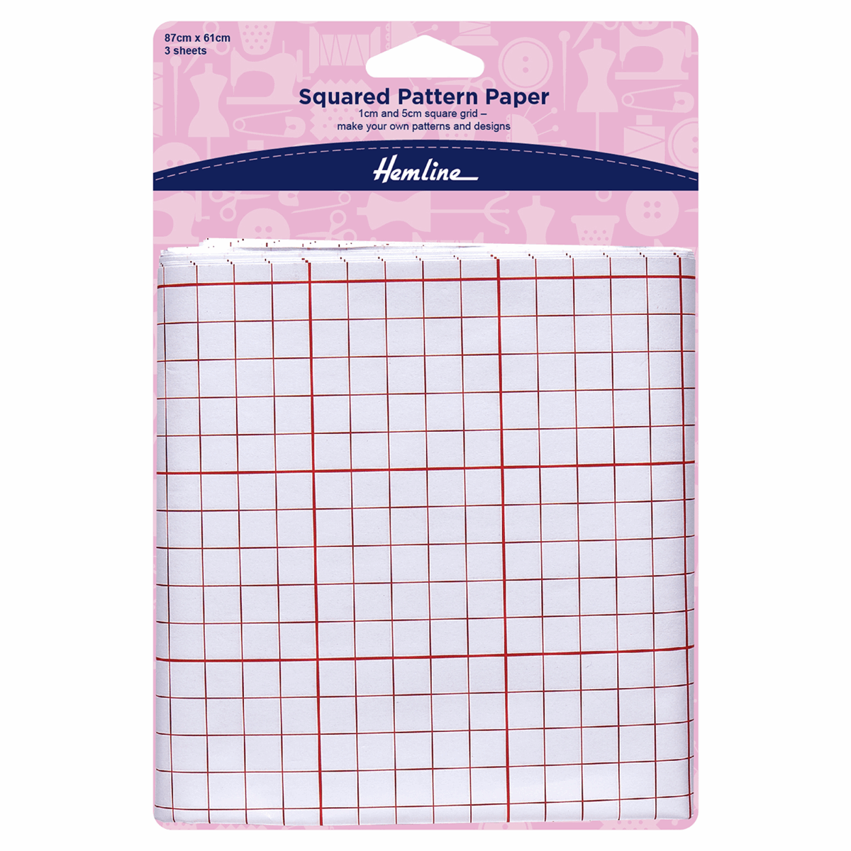 Squares size 5cm are marked with red thick lines; squares size 1cm are marked with fine red lines. 61 x 87cm, 34 x 24".
