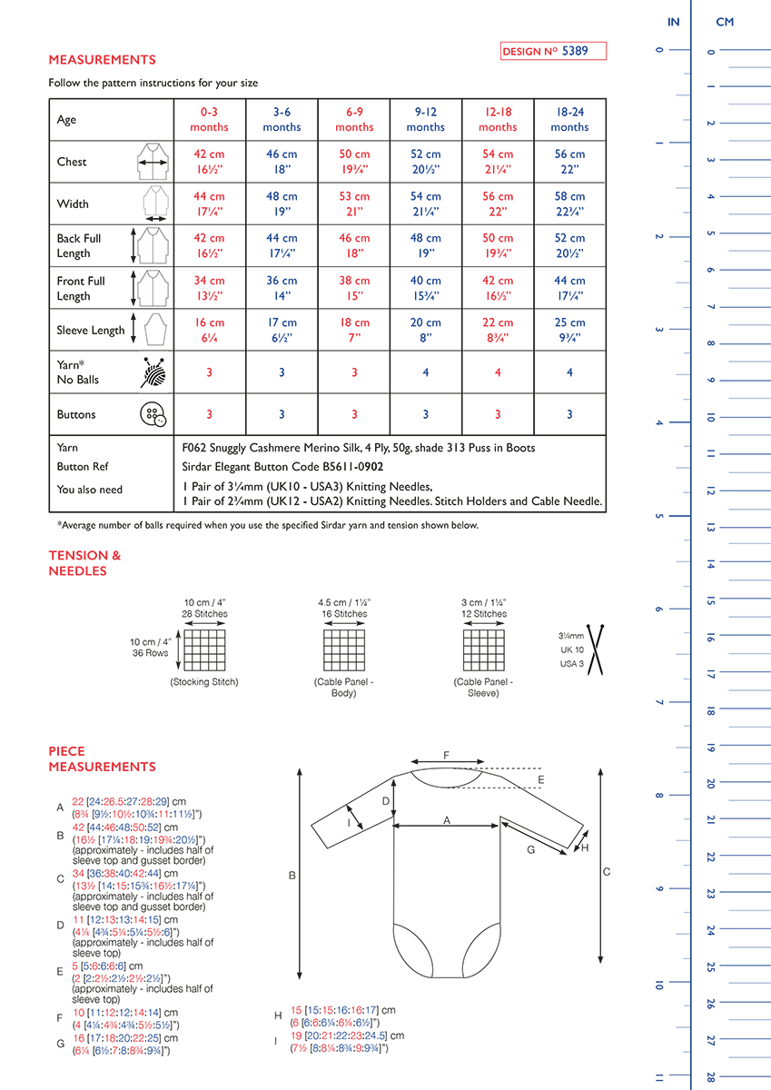 1 Pair of 3.25mm (UK10 – USA3) Knitting Needles, 1 Pair of 2.75mm (UK12 – USA2) Knitting Needles. Stitch Holders and Cable Needle.