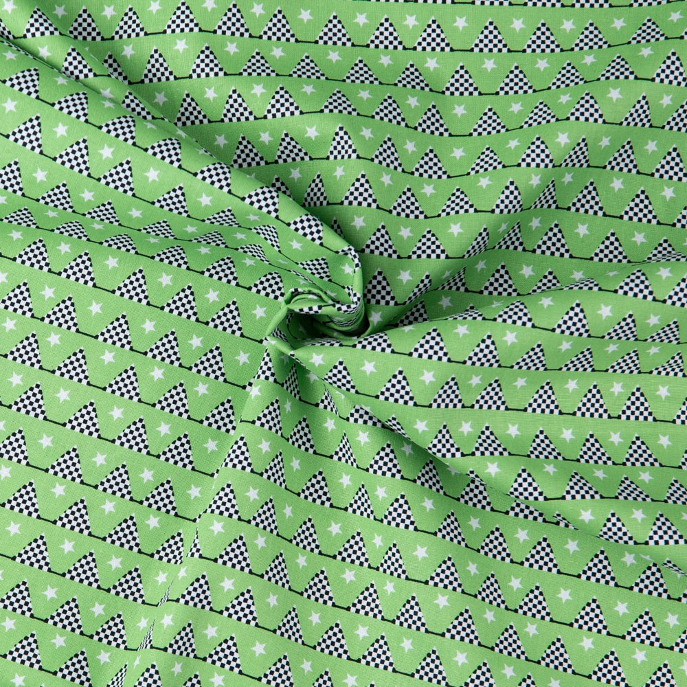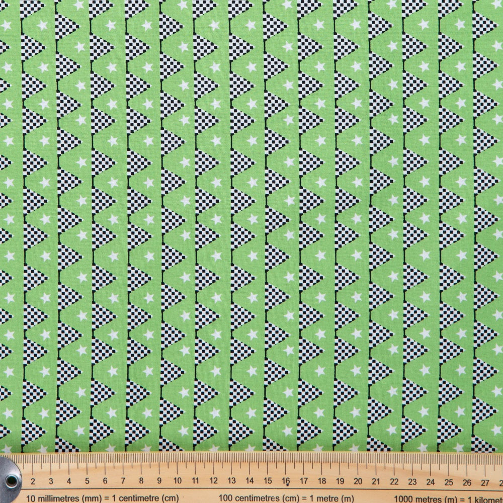 Racing themed print on a green background. Beautiful, high quality, printed cotton fabric. Ideal for quilting, masks, crafts, displays, table decoration and as a dressmaking fabric.