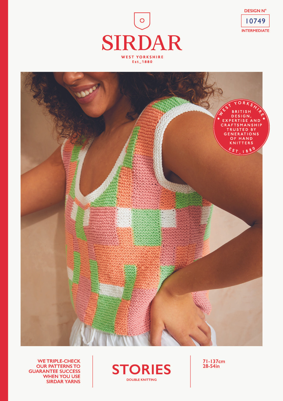 A Staycation Top inspired by a cityscape. Choose one of two pastel colourways and knit the striking geometric pattern using the intarsia technique. The natural stretch of simple garter stitch helps you create the neat fit and sleek silhouette of this intermediate-level pattern.